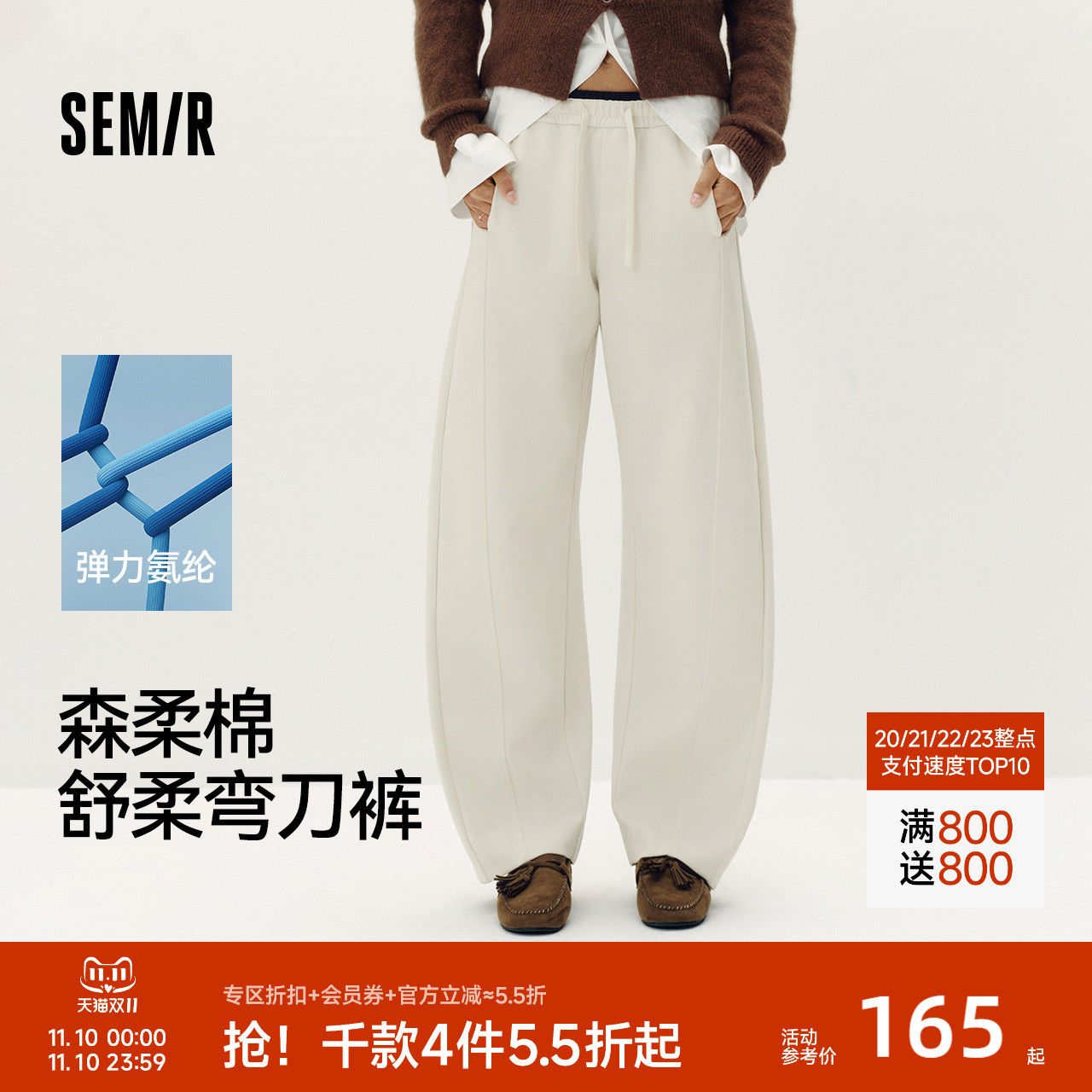 森柔棉|商场同款森马休闲裤女黑色裤子弯刀裤2025新款秋宽松长裤