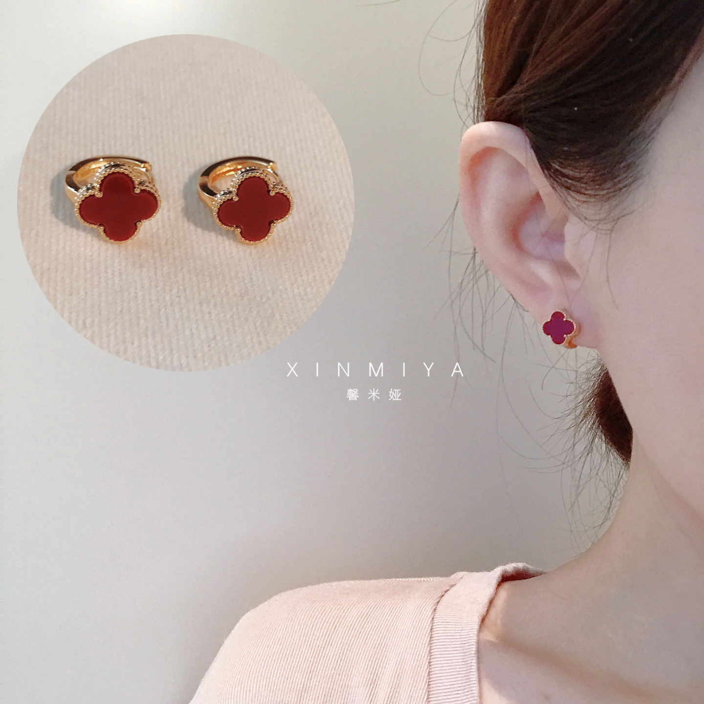 韩国气质高级感四叶幸运花朵耳环耳扣耳圈女2025新款爆款独特耳钉
