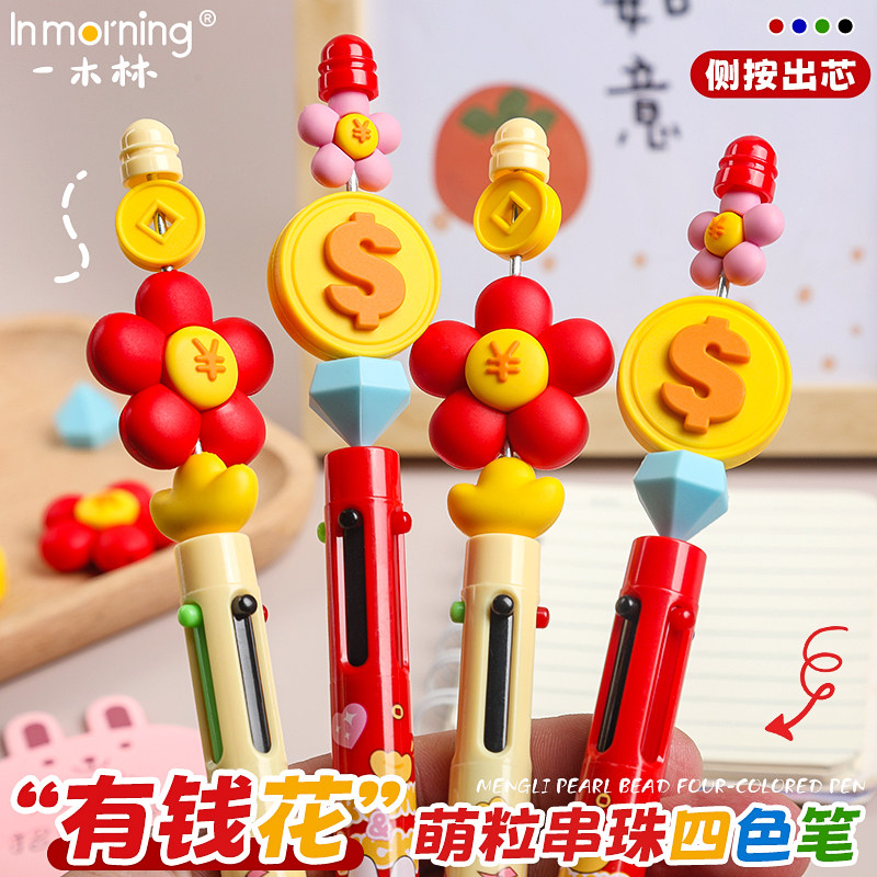 一木林有钱花四色笔按动中性笔多功能模块笔高颜值多色四色记忆学生笔记专用彩色水笔标记记号笔手账笔签字笔