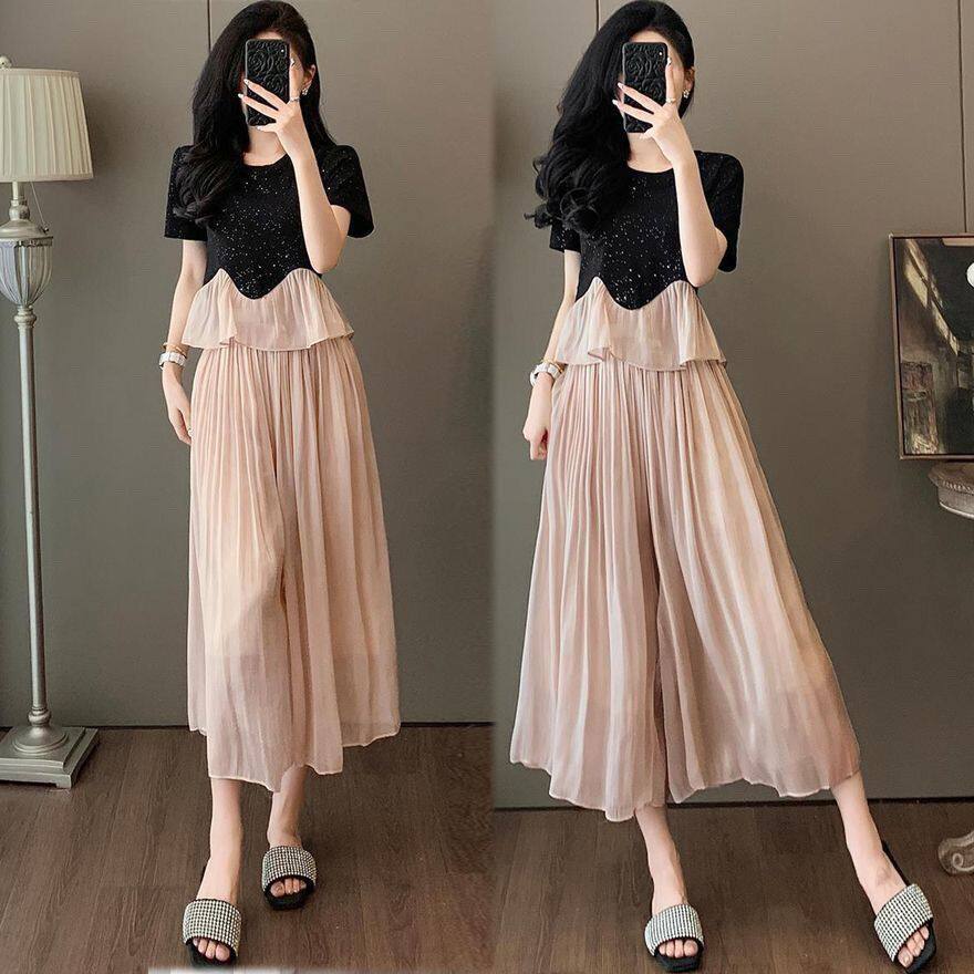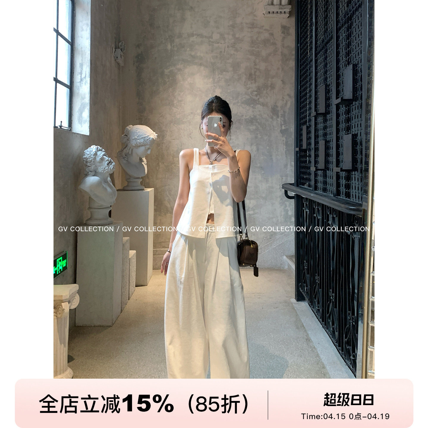 GV大白哥 解构设计感 立体假两件背心阔腿裤套装气质上衣显瘦裤子