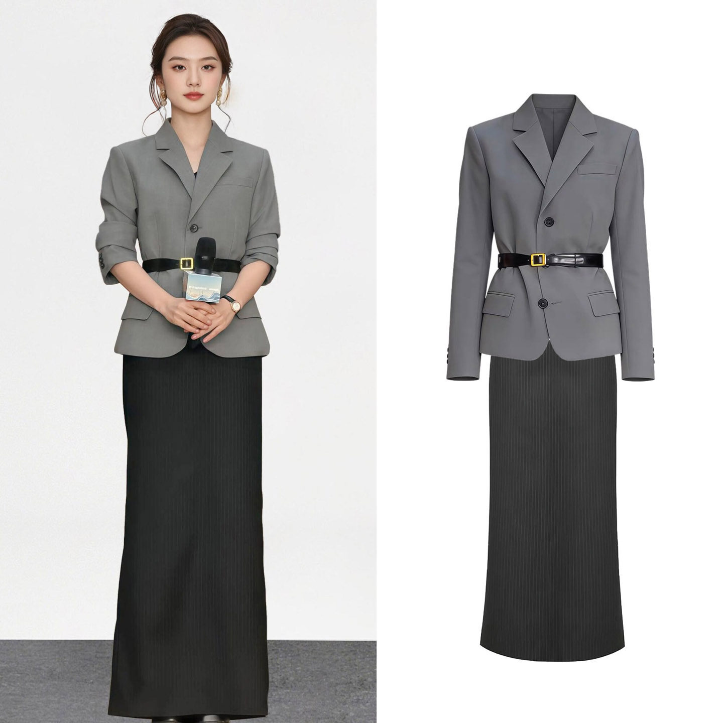 我的山与海谭松韵同款高智感灰色西装套装女26新款气质西服两件套