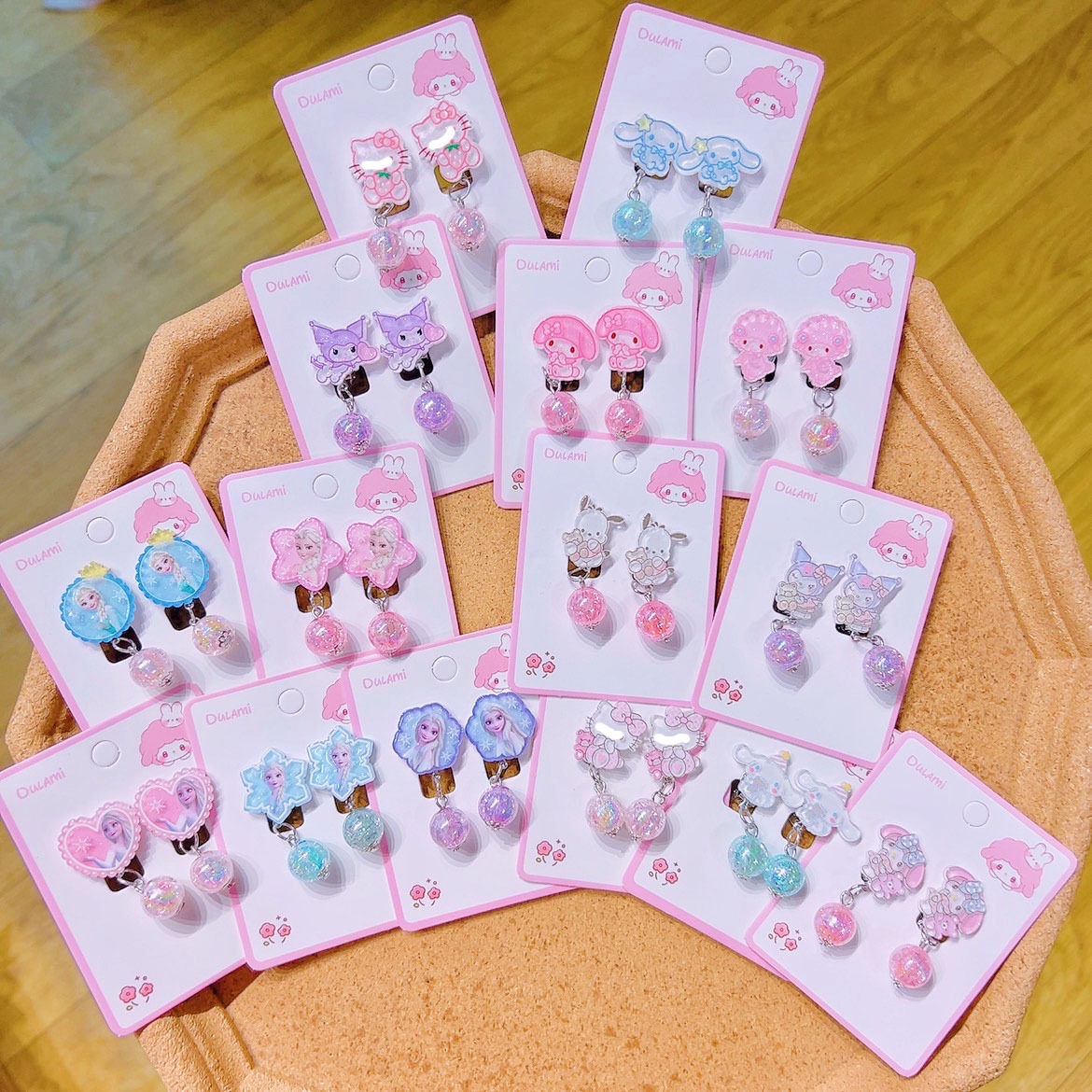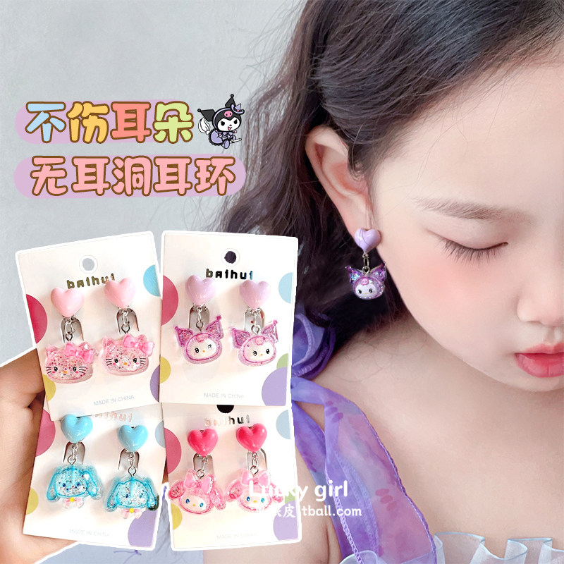 库洛米儿童耳夹女童新款宝宝耳环无耳洞硅胶可爱卡通耳钉耳坠饰品