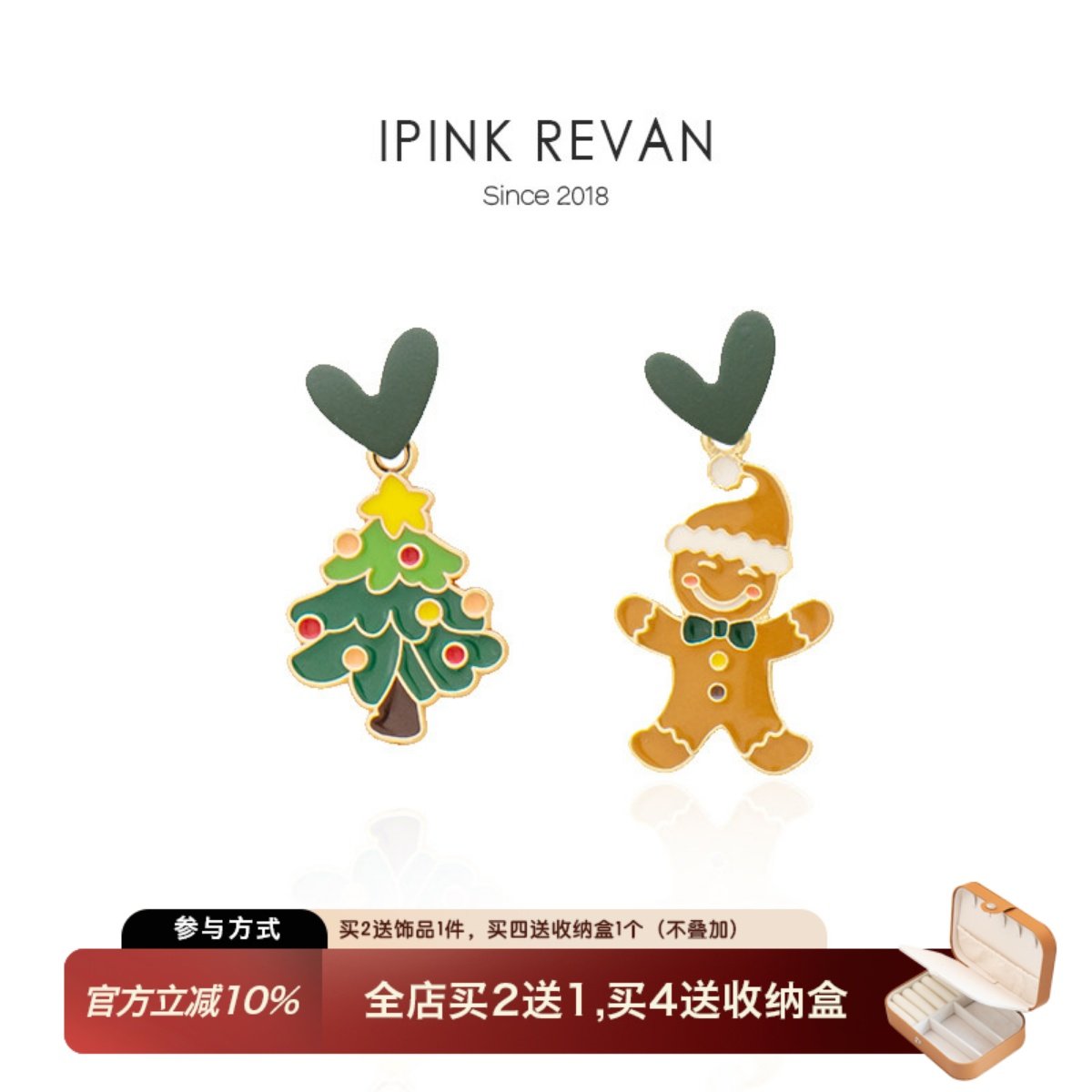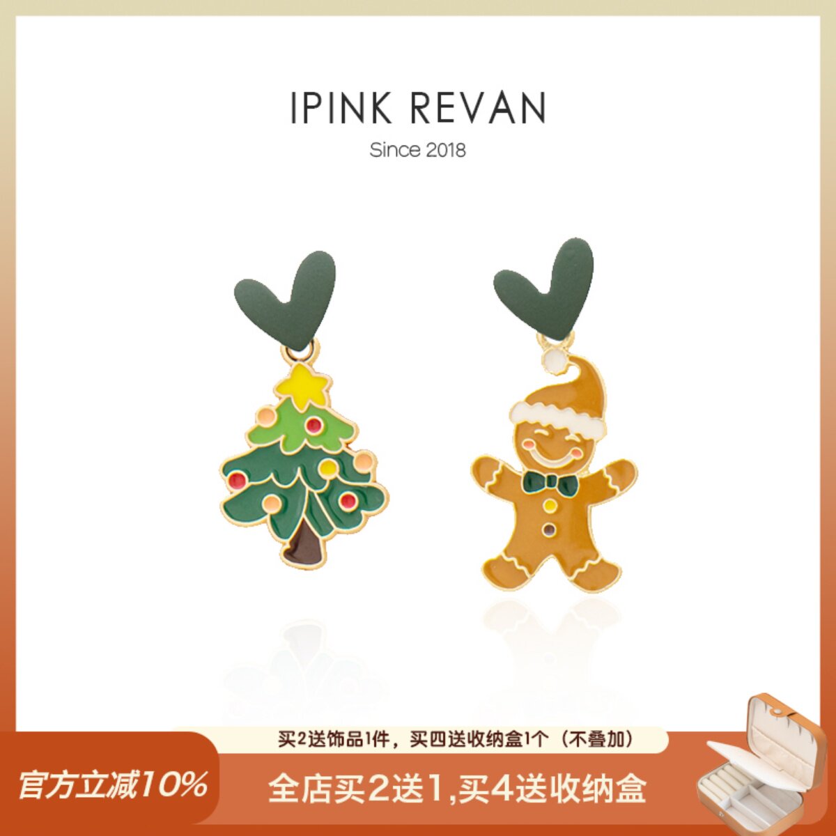 IPNK原创圣诞节圣诞树饼干人不对称设计可爱卡通耳钉耳夹无耳洞