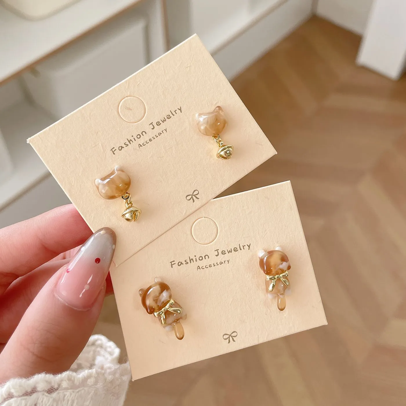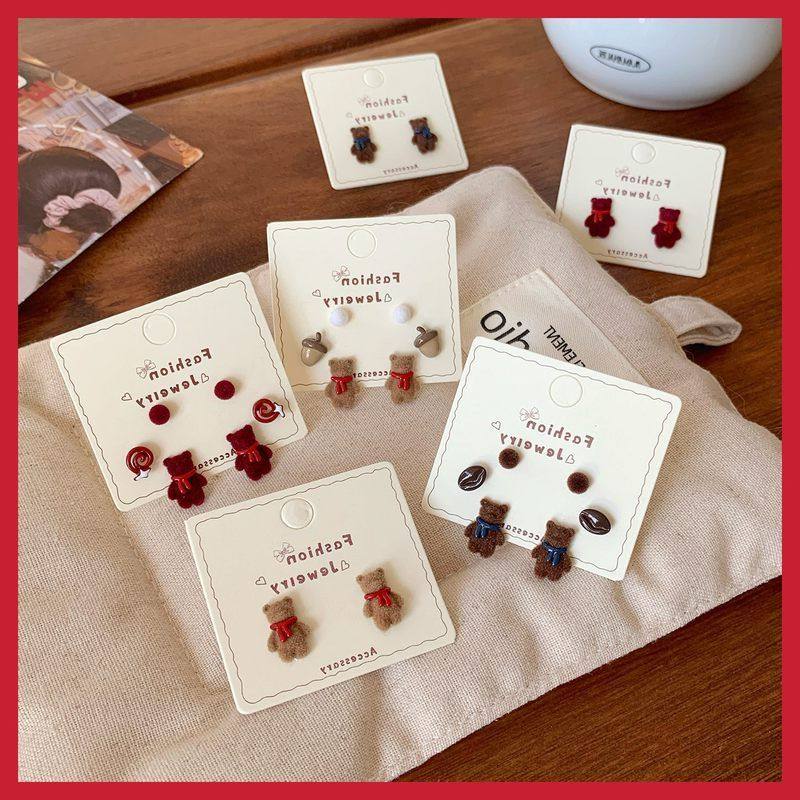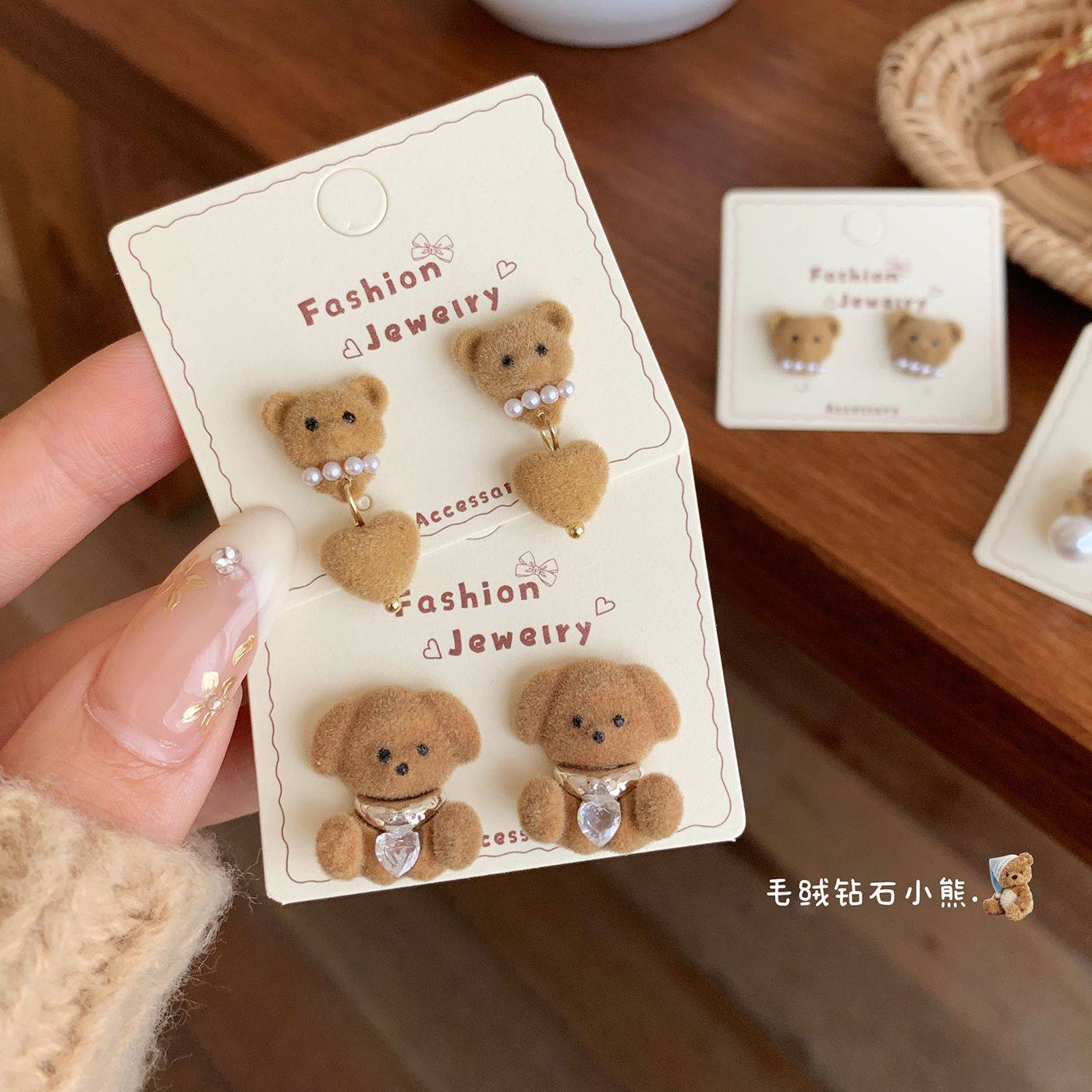 2025新款植绒小熊合集秋冬卡通耳钉女银针甜美可爱设计感学生耳环