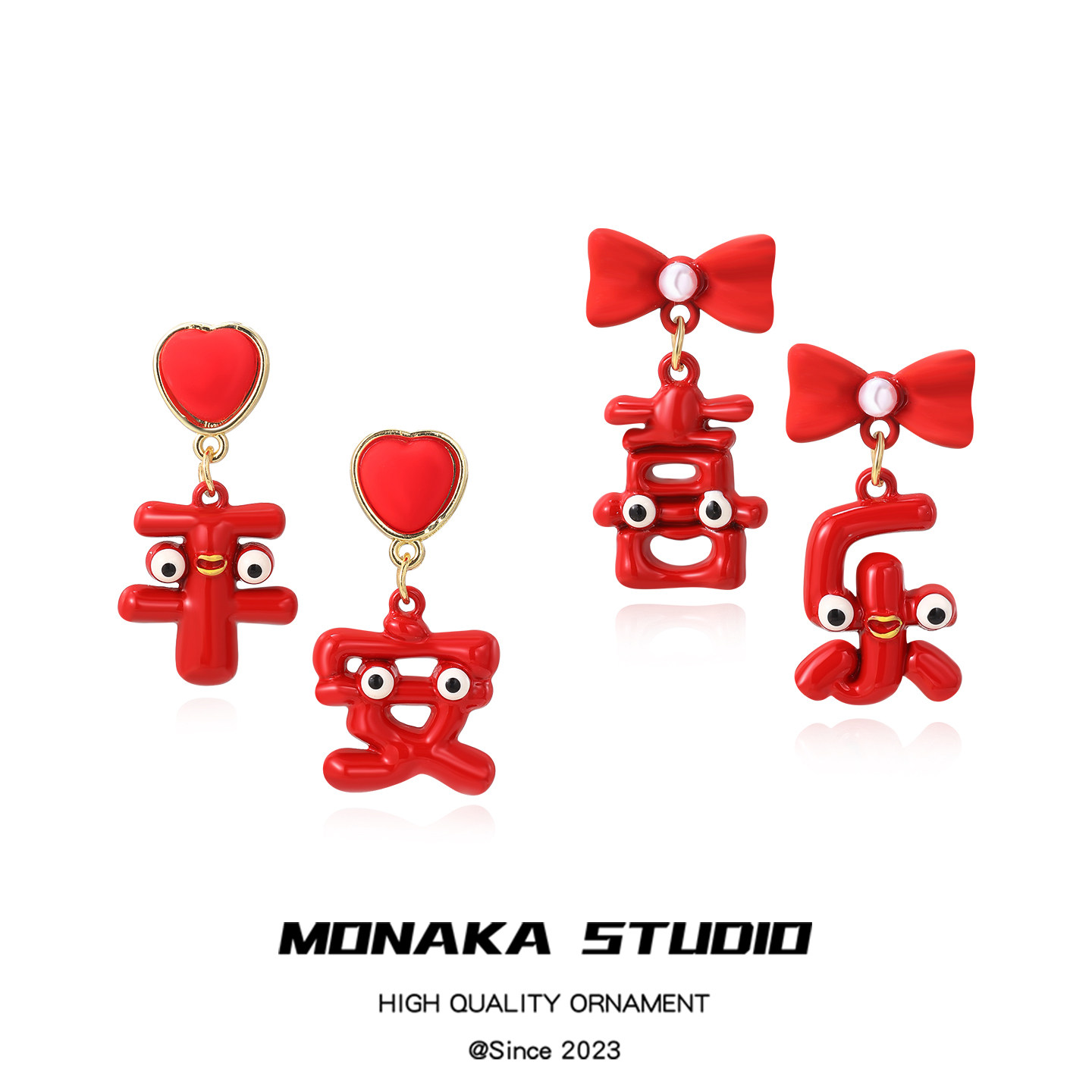 IPINK新年可爱星星金元宝耳环萌趣卡通个性耳饰喜庆红色耳钉耳夹