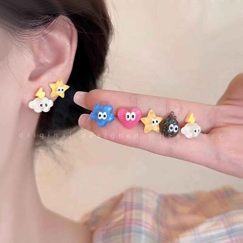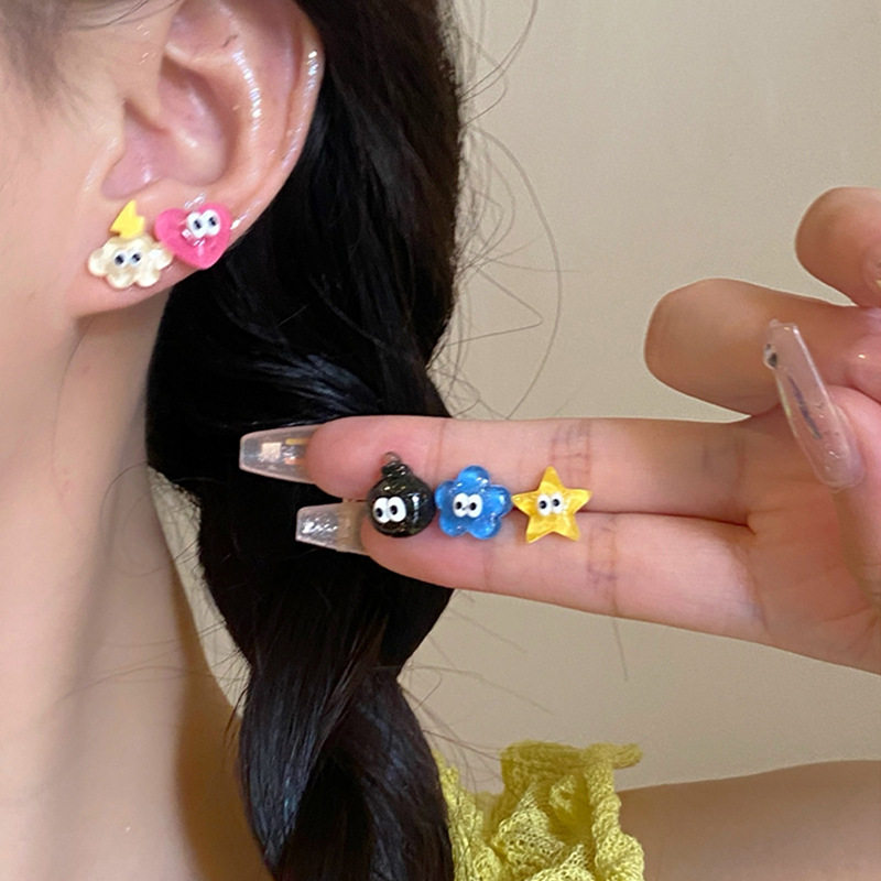 可爱卡通搞怪银针耳钉套装2025新款小巧童趣学生耳环个性百搭耳饰