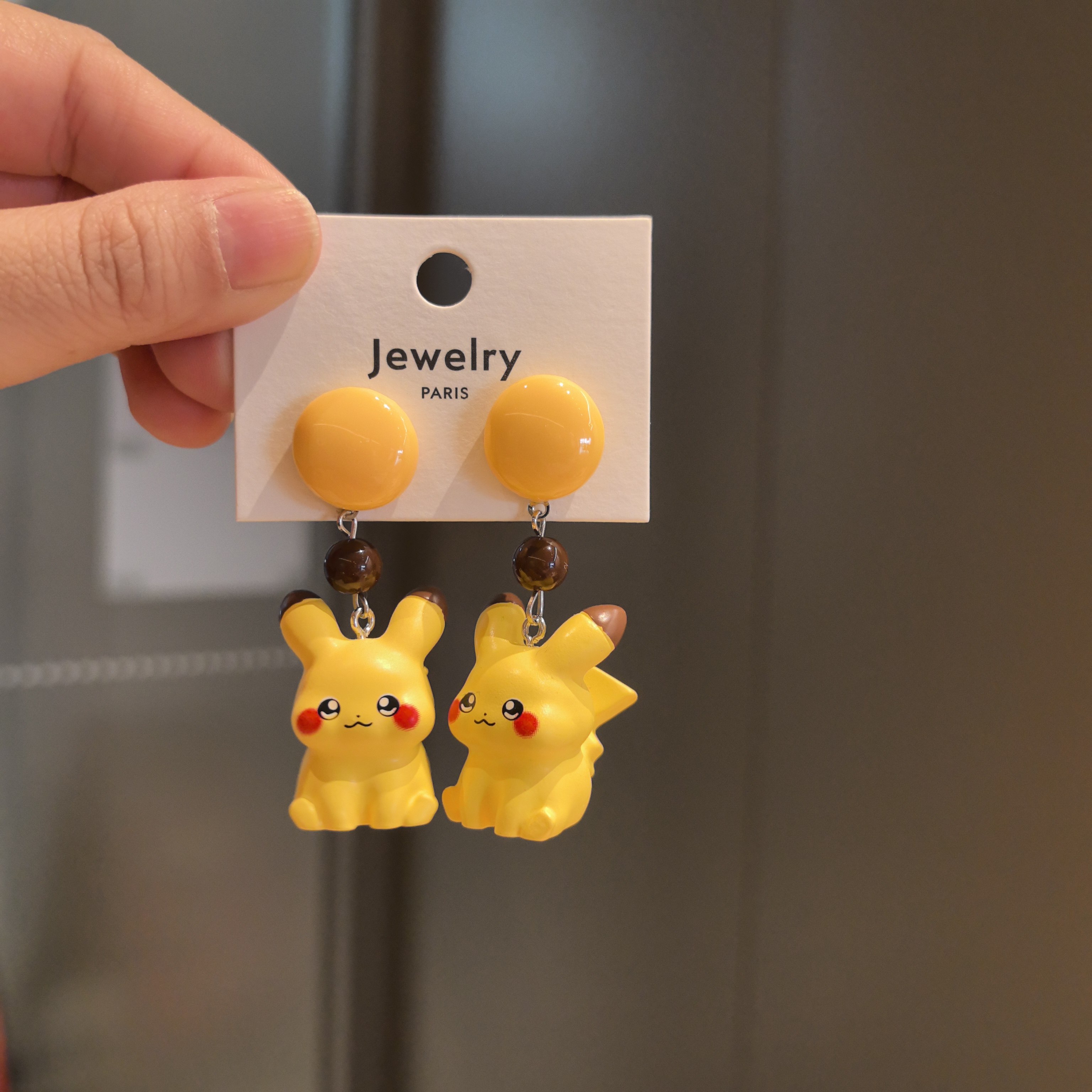 沐琪手作可爱宝可梦皮卡丘夸张耳饰童趣日系卡通耳钉小众设计耳夹