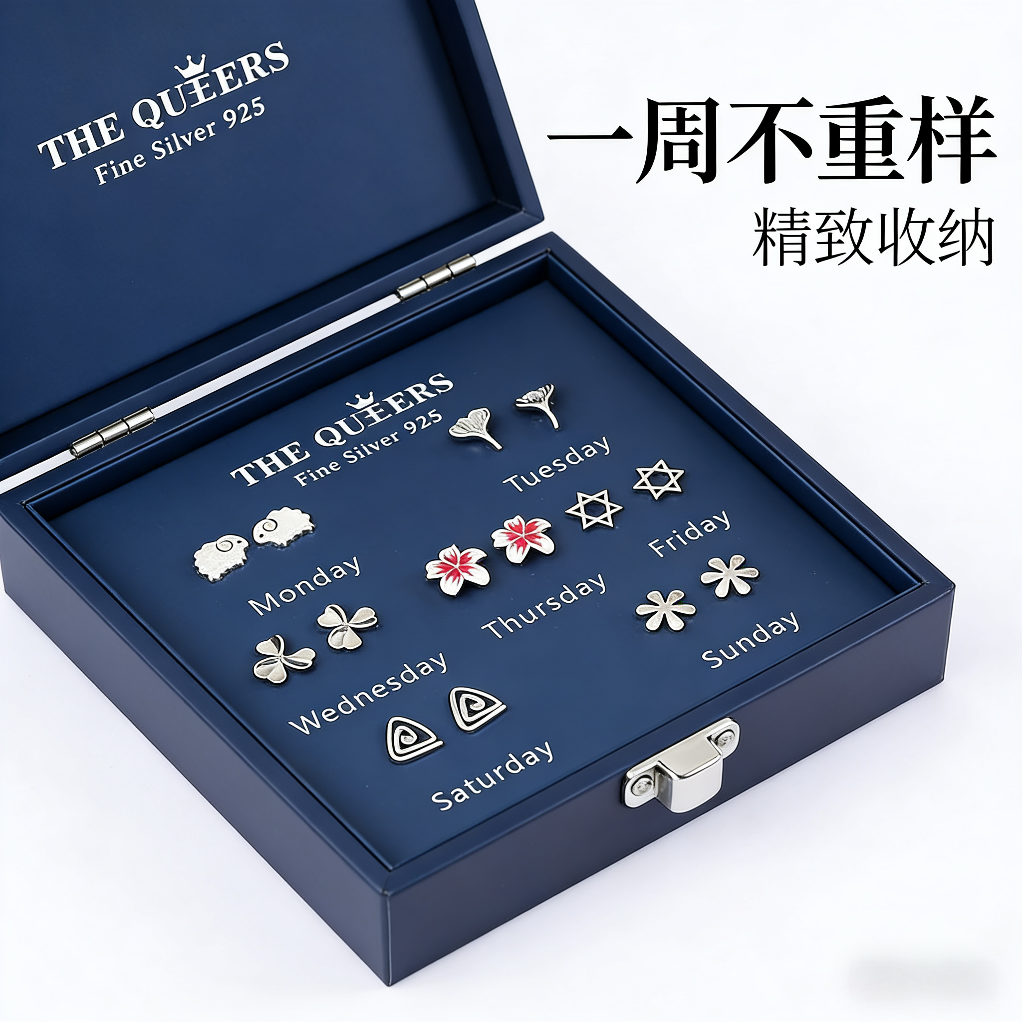 s925纯银一周卡通耳钉新款潮耳环女学生简约可爱礼盒生日礼物耳饰