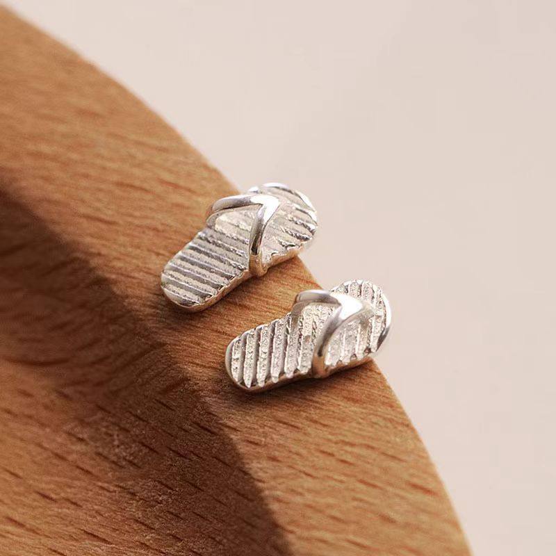 925银针人字拖可爱卡通耳钉女生日韩搞怪简约拖鞋耳饰夏季新品