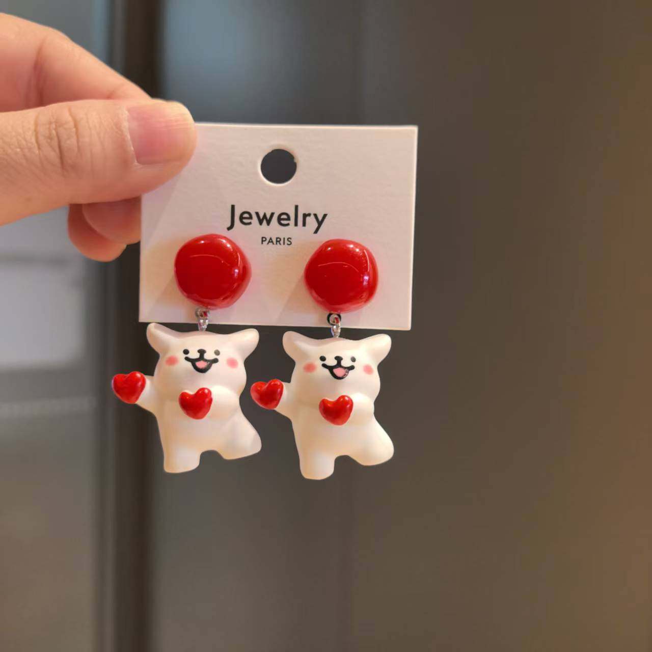 沐琪手作可爱新年狗狗立体卡通耳钉童趣小众设计款耳饰小白狗耳夹