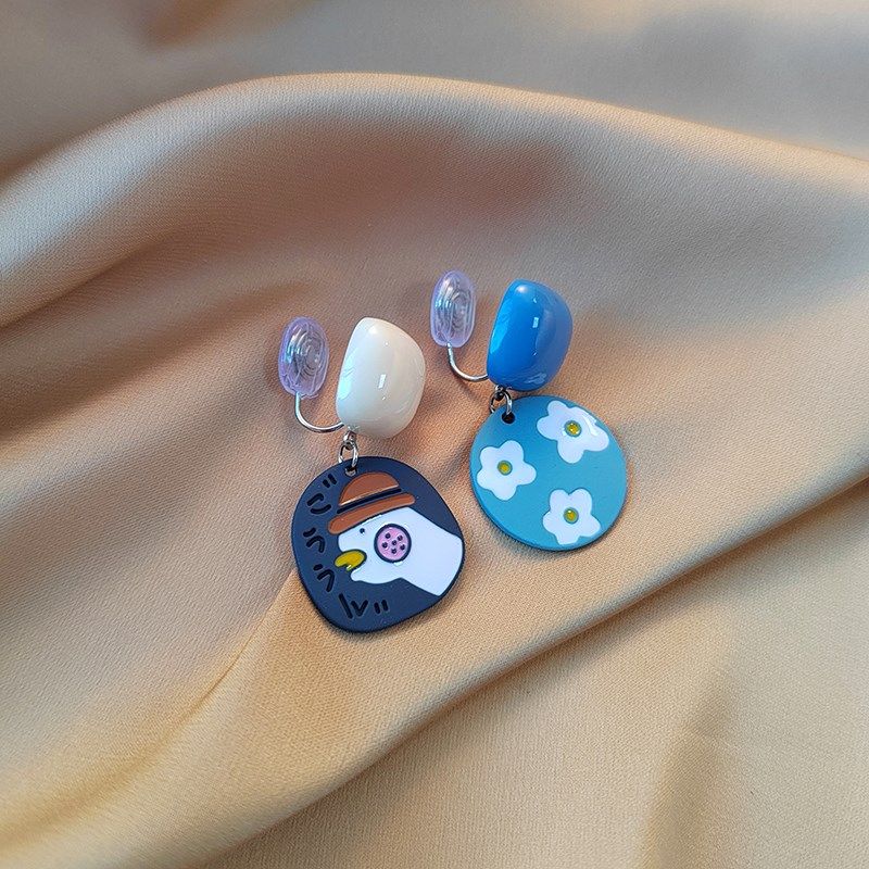 日系手作耳环不对称加油鸭卡通耳钉女可爱耳饰蚊香盘耳夹无耳洞女