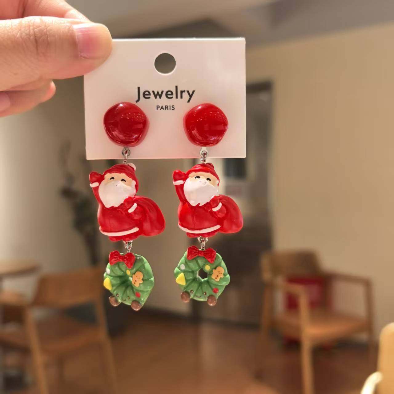 沐琪手作圣诞节氛围感耳饰圣诞老人可爱卡通耳钉独特小众设计耳夹