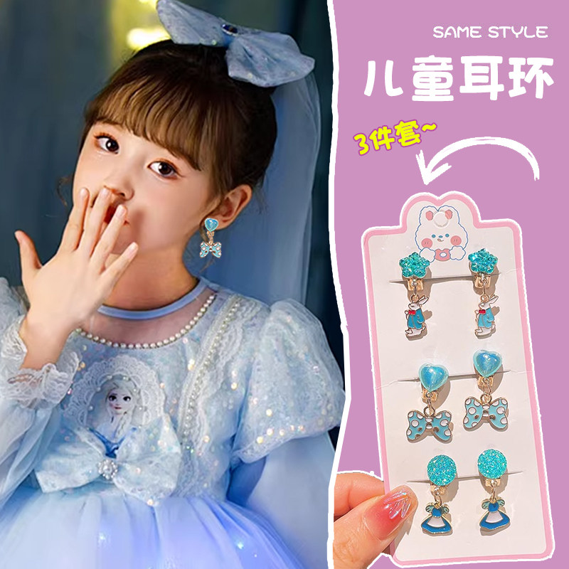5对装宝宝无耳洞防痛女童假耳环可爱公主卡通耳钉儿童耳夹耳坠潮