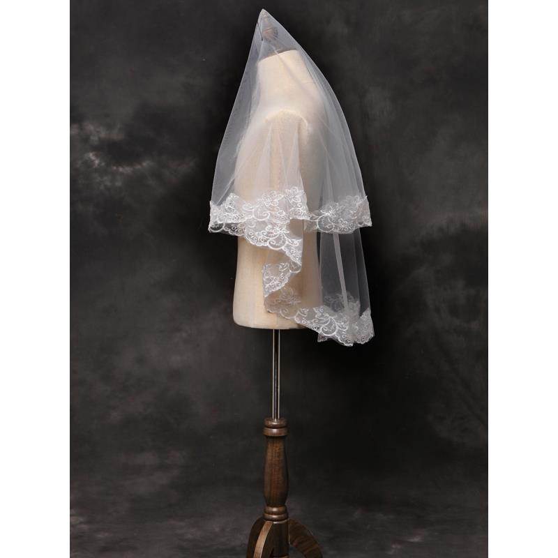 韩式新娘梦幻婚礼唯美主婚纱头纱蕾丝长拖尾双层遮面影楼拍照道具