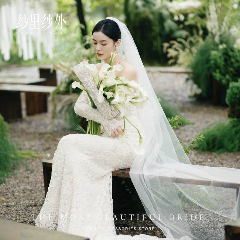 - 婚纱双肩齐地