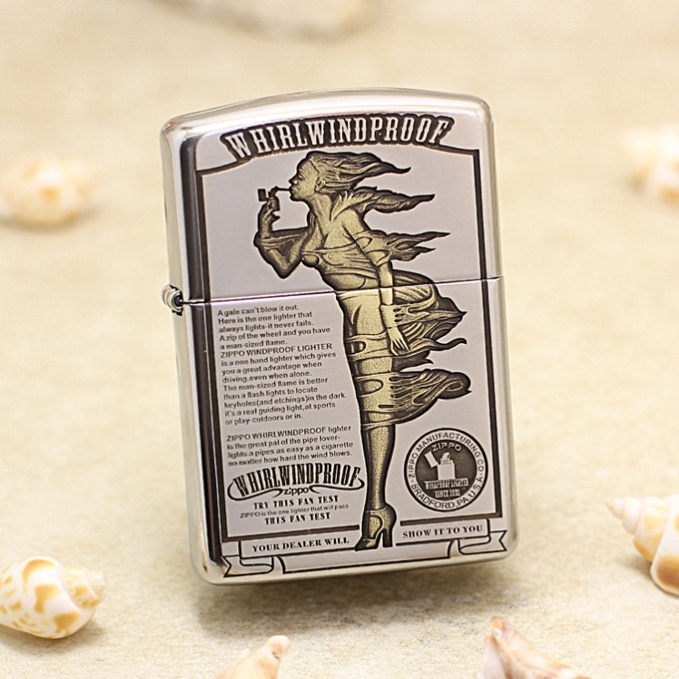 正品zippo打火机芝宝正版之宝167纯铜精雕盔甲3D风中女郎zp送男士