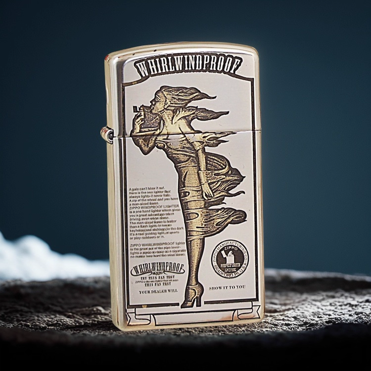 原装正品zippo打火机纤巧窄机精雕3D风中女郎zppo小机型男士礼物