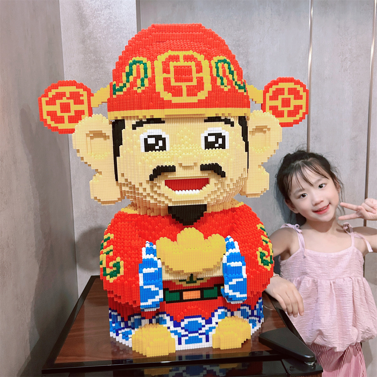 财神爷益智拼装玩具超大成人拼图礼物国潮积木招财摆件适用于乐高