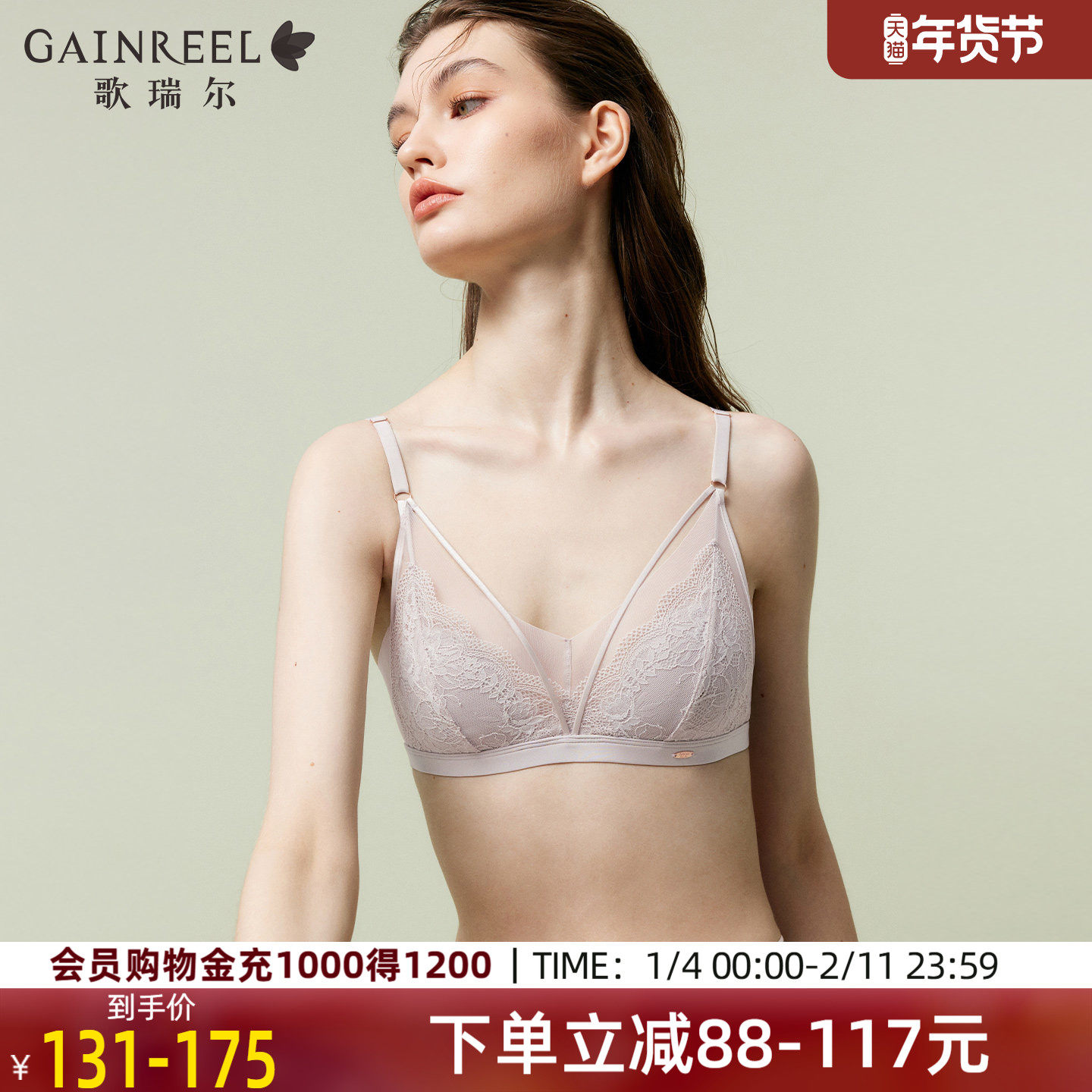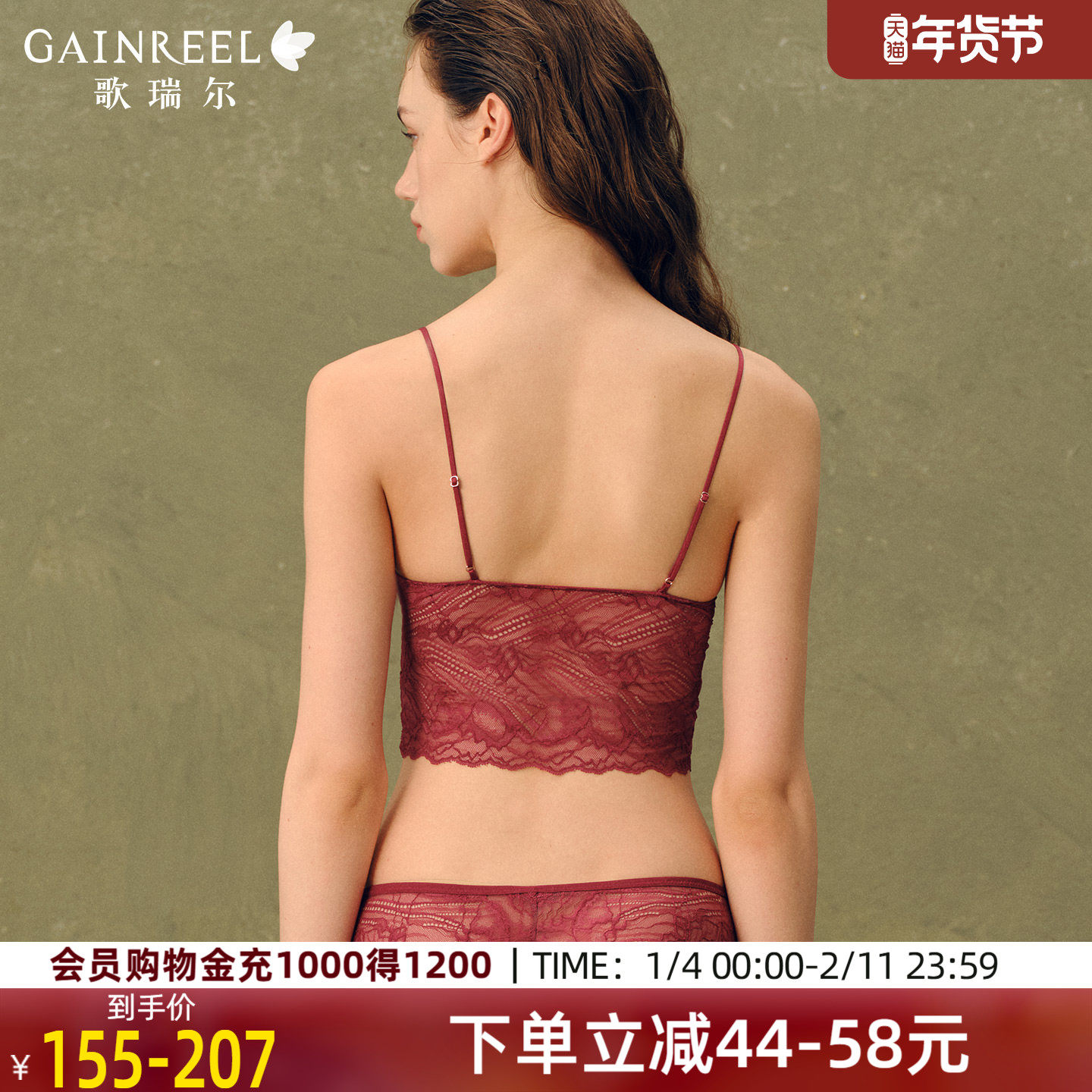【会员专享】歌瑞尔性感内衣美背一体式内搭禁欲系蕾丝深V文胸罩