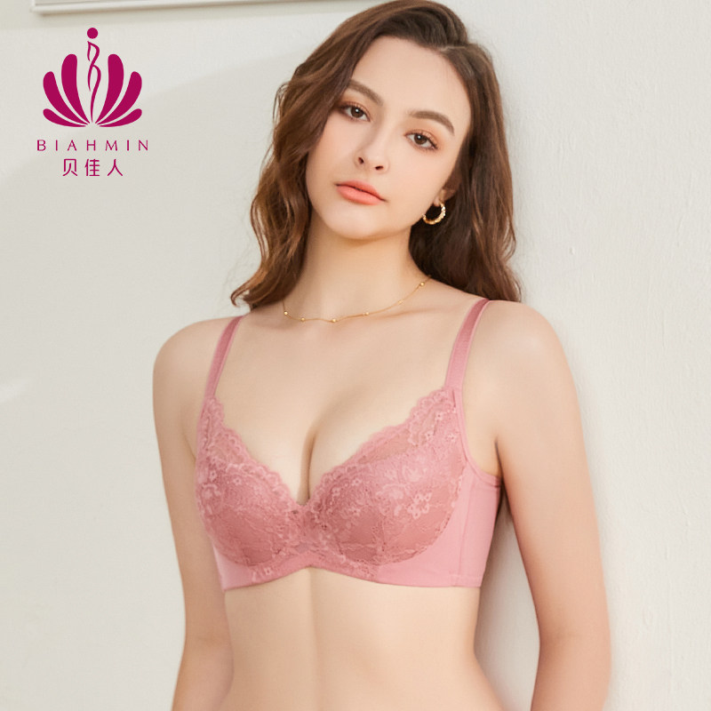 贝佳人新款性感深V文胸透气薄棉杯聚拢舒适收副乳蕾丝防下垂内衣