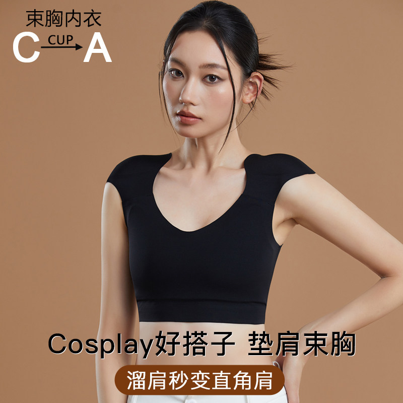 粉底液垫肩内衣女直角肩神器隐形深V文胸cos专用无痕束胸大胸显小