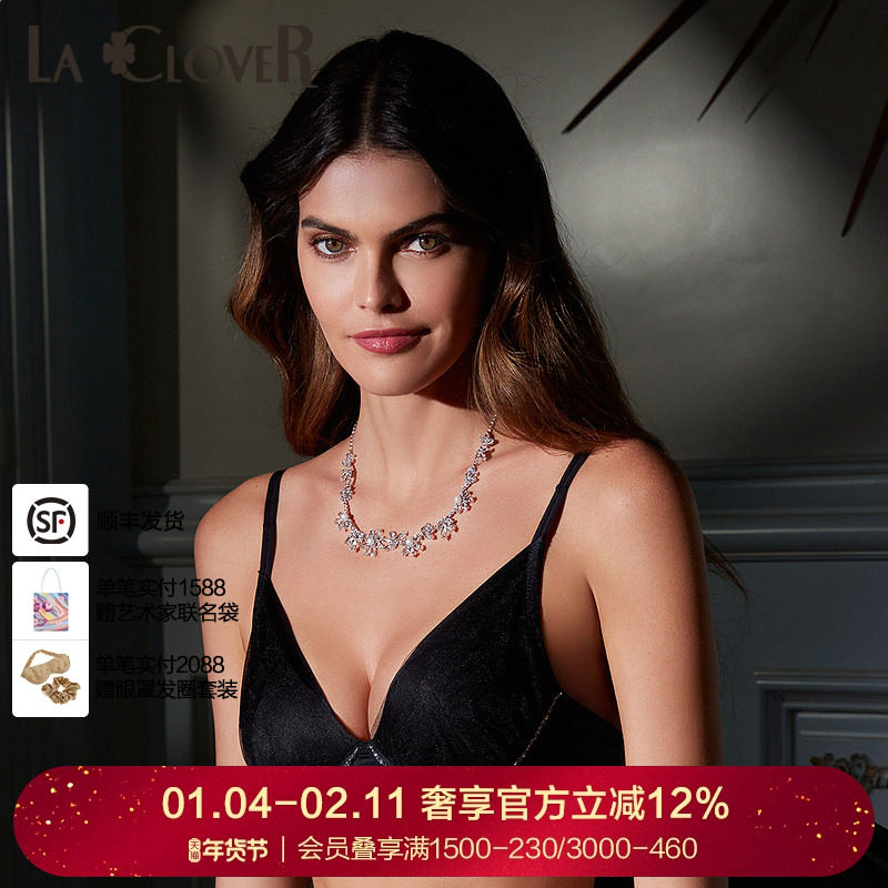 LACLOVER兰卡文暗夜天使系列网纱聚拢深V文胸LC11SG1