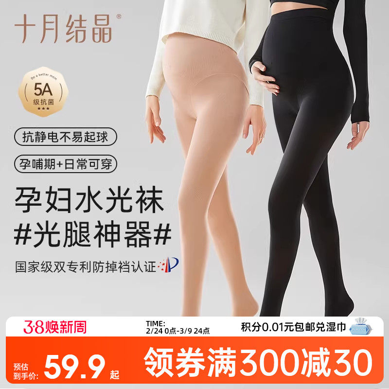 十月结晶孕妇打底连裤袜水光针袜提臀防勾丝掉档外穿光腿神器春季