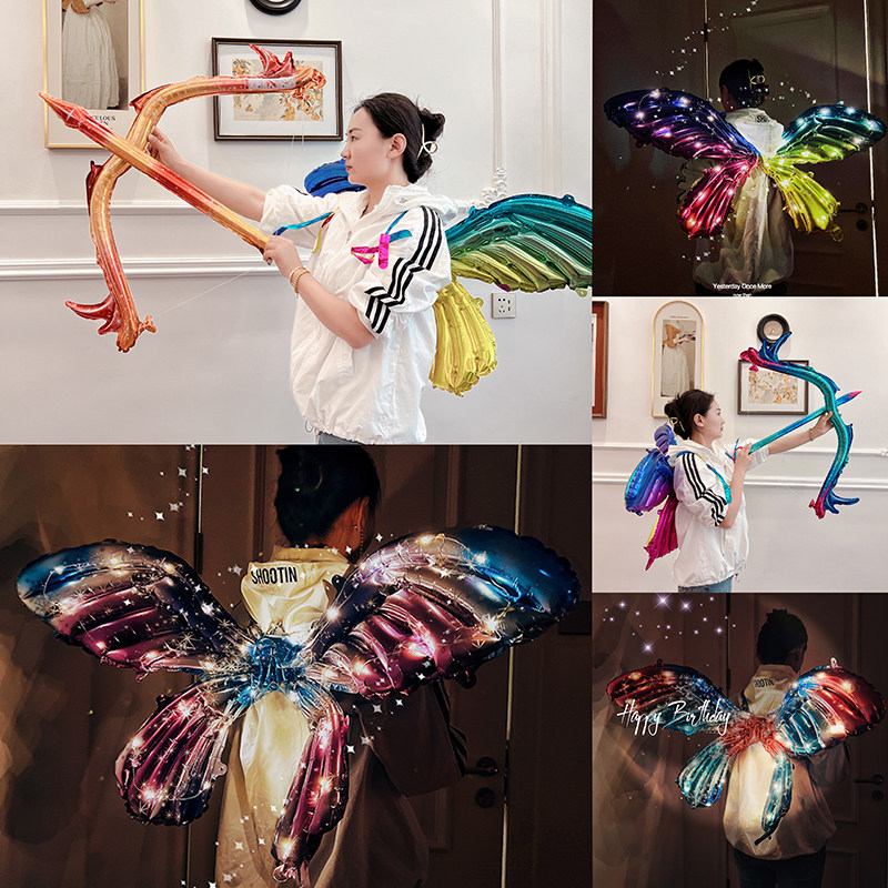 蝴蝶翅膀气球弓箭六一儿童背饰宝宝网红生日装饰汽球夜市摆摊批发