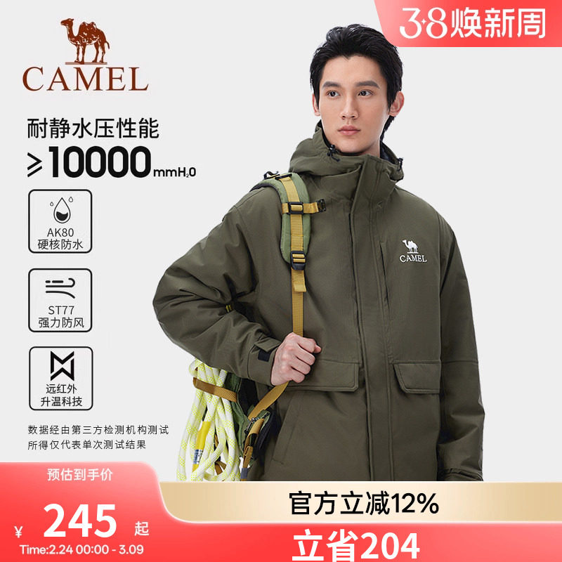 骆驼拒水羽绒冲锋衣男子三合一2026冬防风防水保暖羽绒登山服外套
