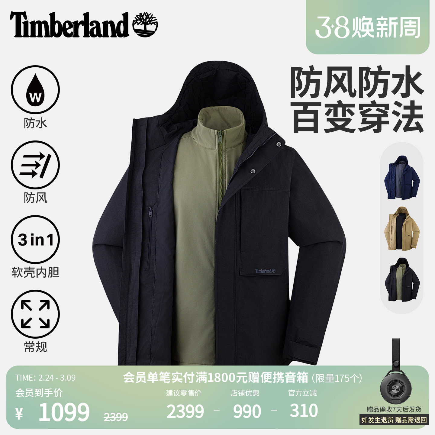 Timberland添柏岚男女冲锋衣三合一外套冬保暖防水软壳内胆|0YH6K