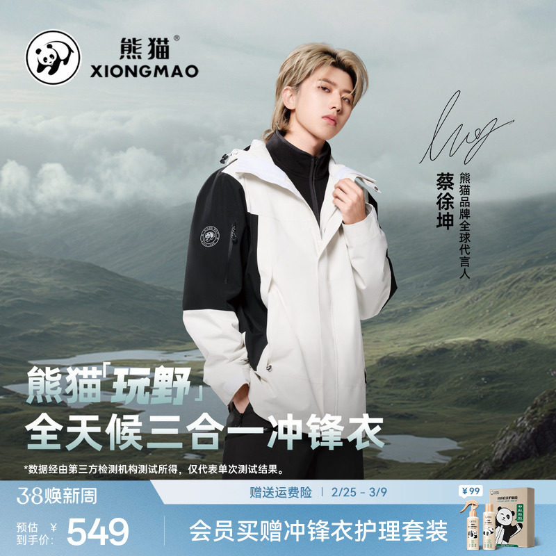 蔡徐坤同款雨壳MAX熊猫冲锋衣三合一秋冬防风防水户外登山服男女