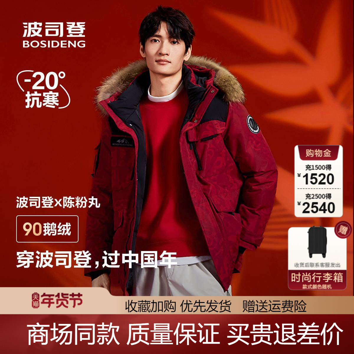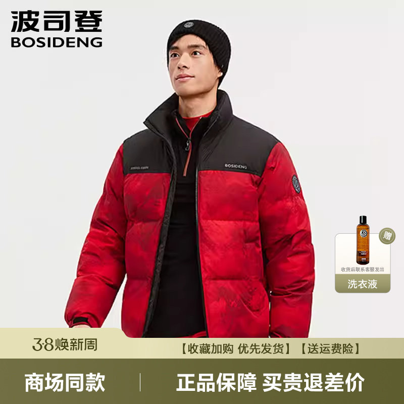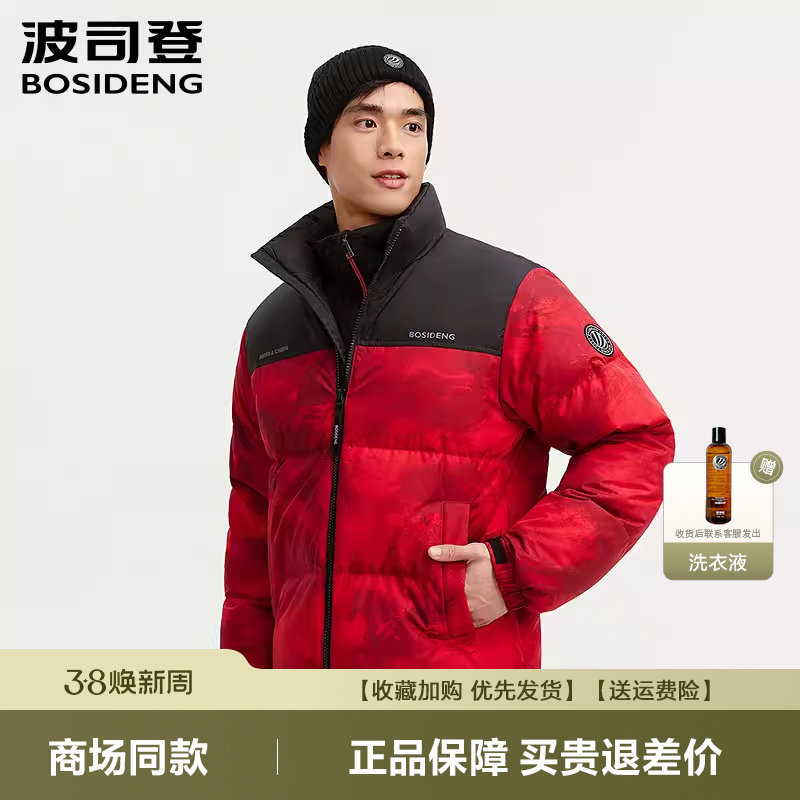 BJHG不计后果90白鸭绒假两件羽绒服男款冬季外套新年红色羽绒服女