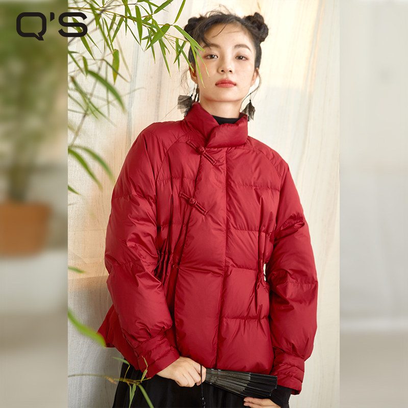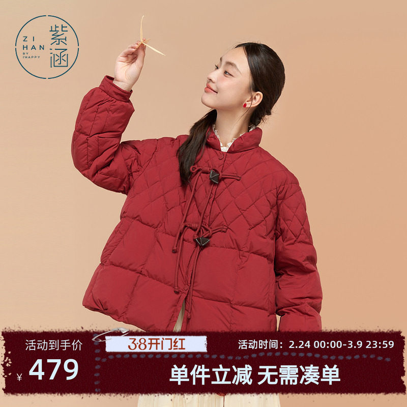 紫涵短款盘扣红色羽绒服外套女冬季新款立领保暖宽松白鸭绒面包服
