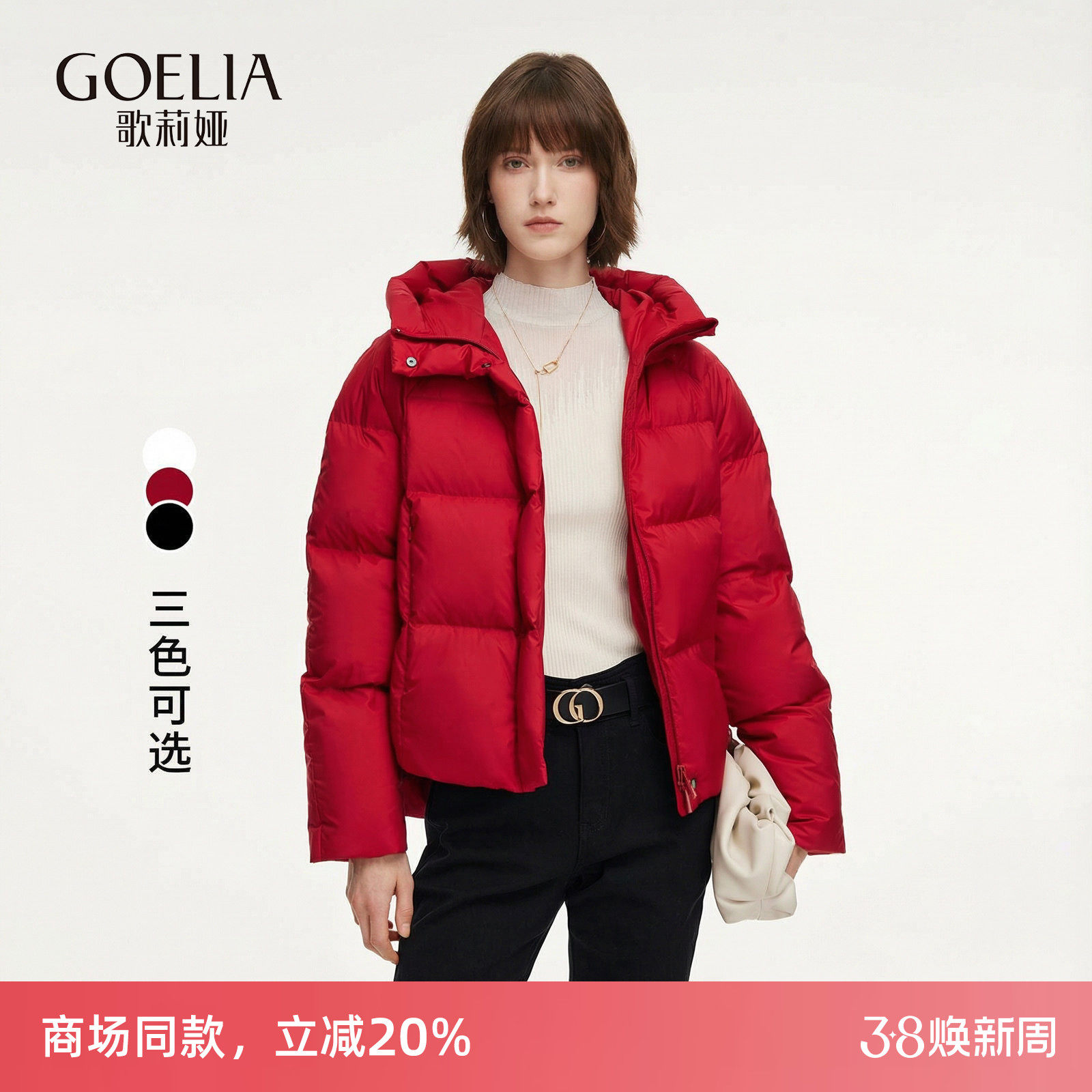 歌莉娅95%鹅绒服红色羽绒服女冬季本命年穿搭小个子轻薄短款外套