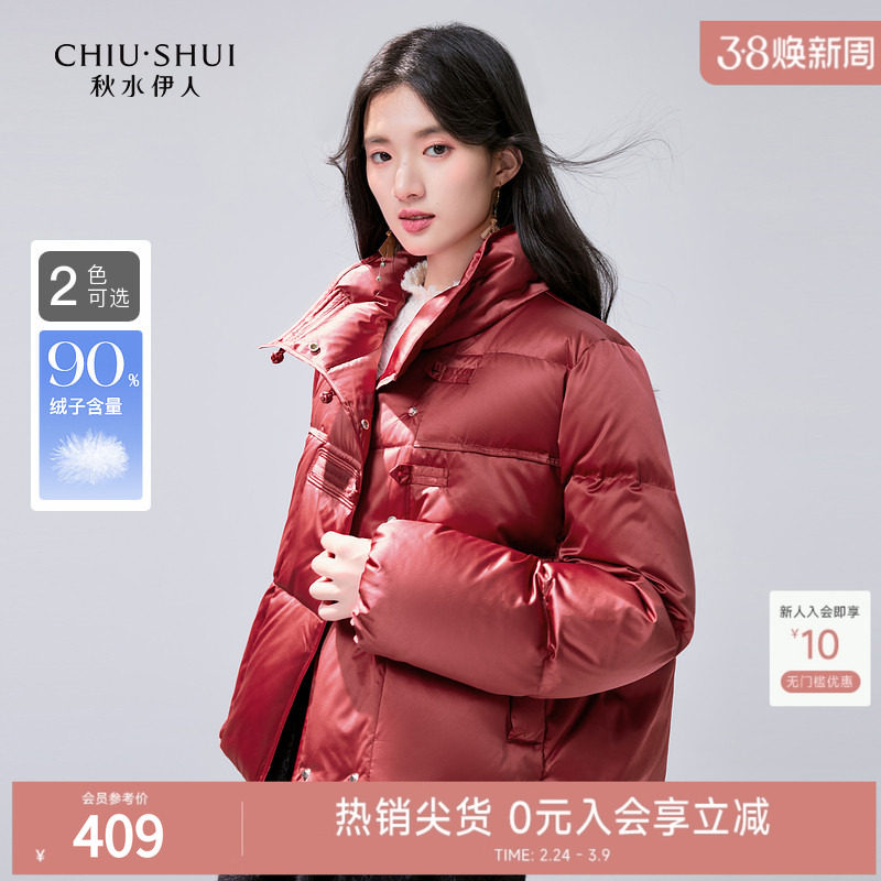秋水伊人时尚带毛领红色羽绒服2025秋冬新款女90白鸭绒小个子外套
