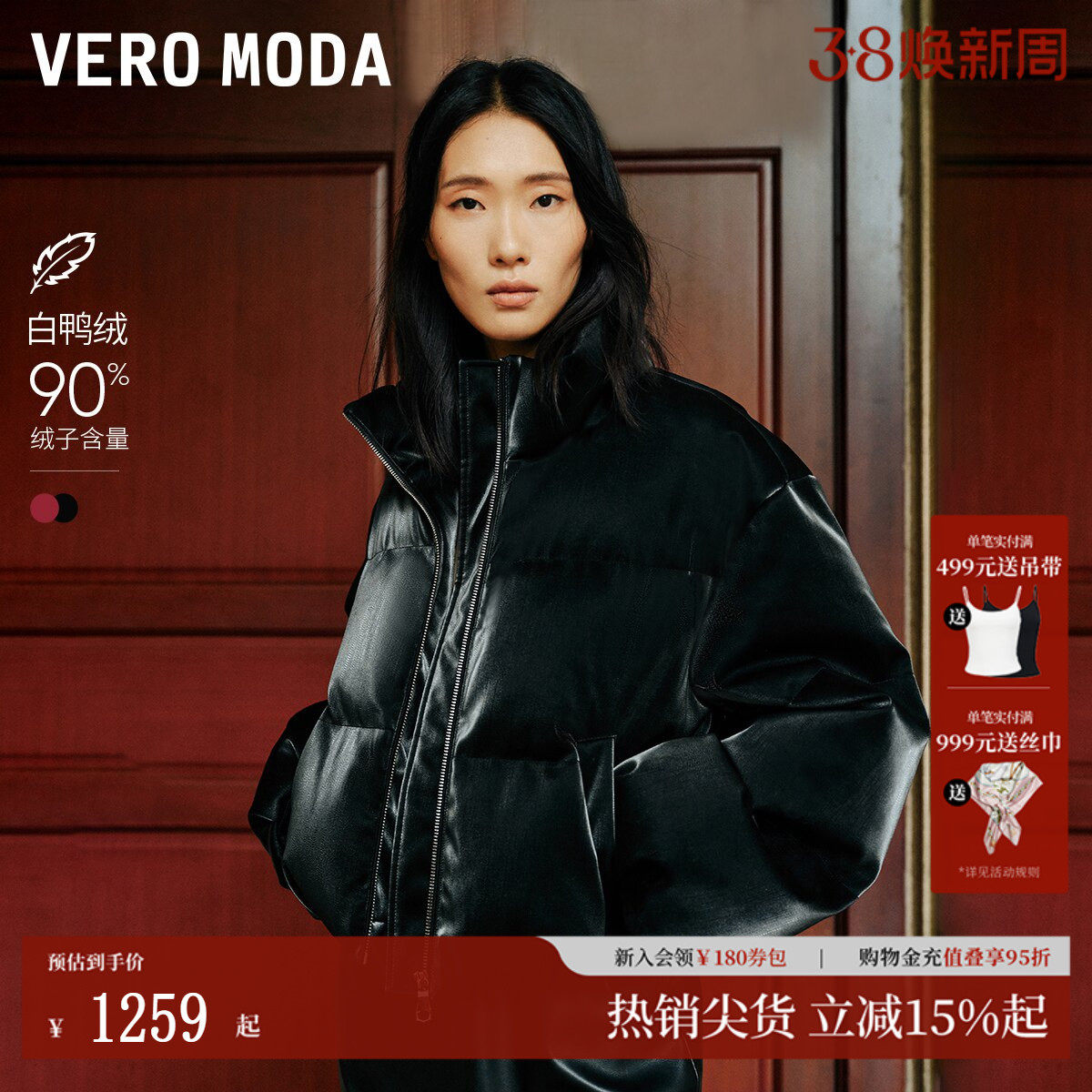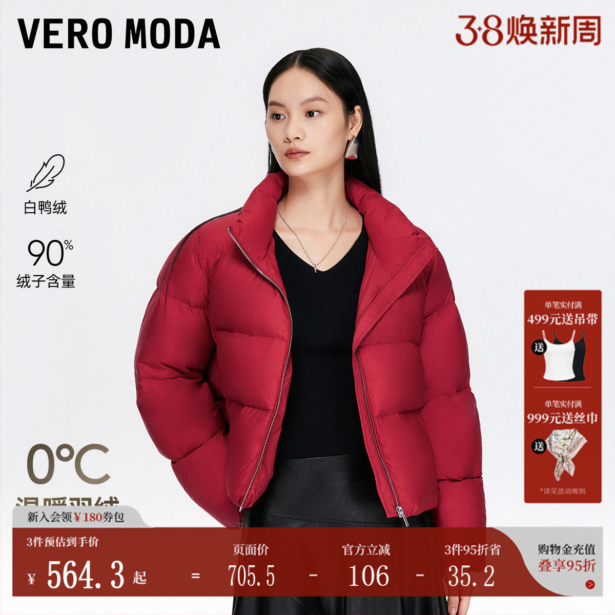 Vero Moda羽绒服女2026春季新款90白鸭绒泡芙红色羽绒服325423003