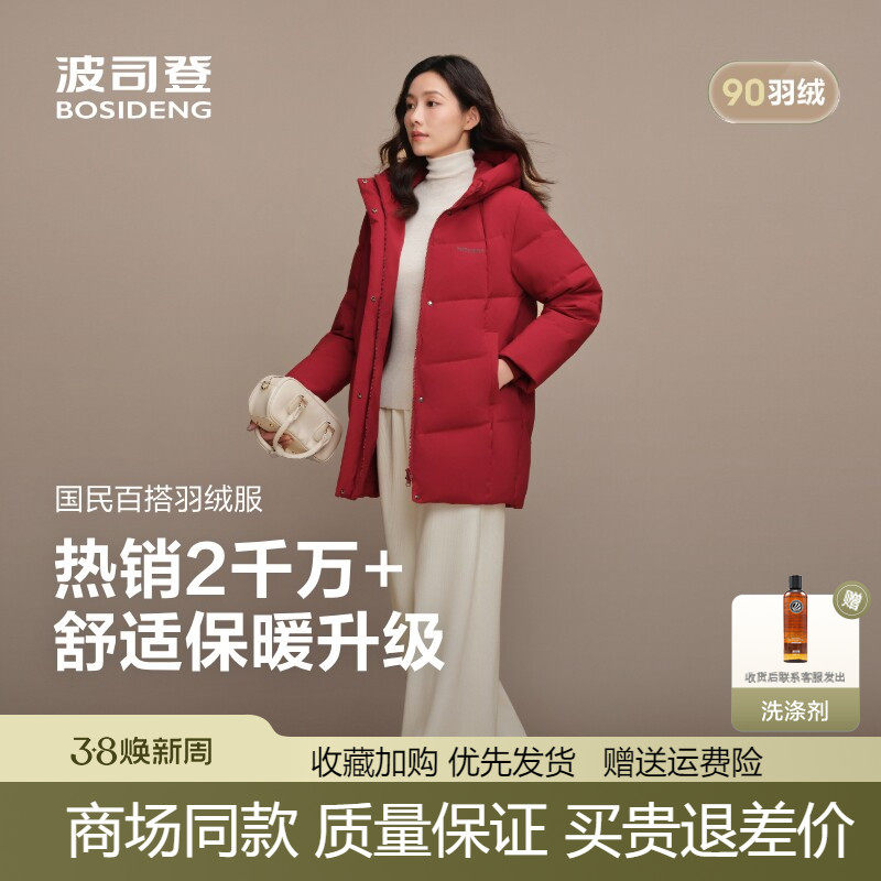 波司登2025新款女中长款保暖加厚妈妈款宽松红色羽绒服B250245122