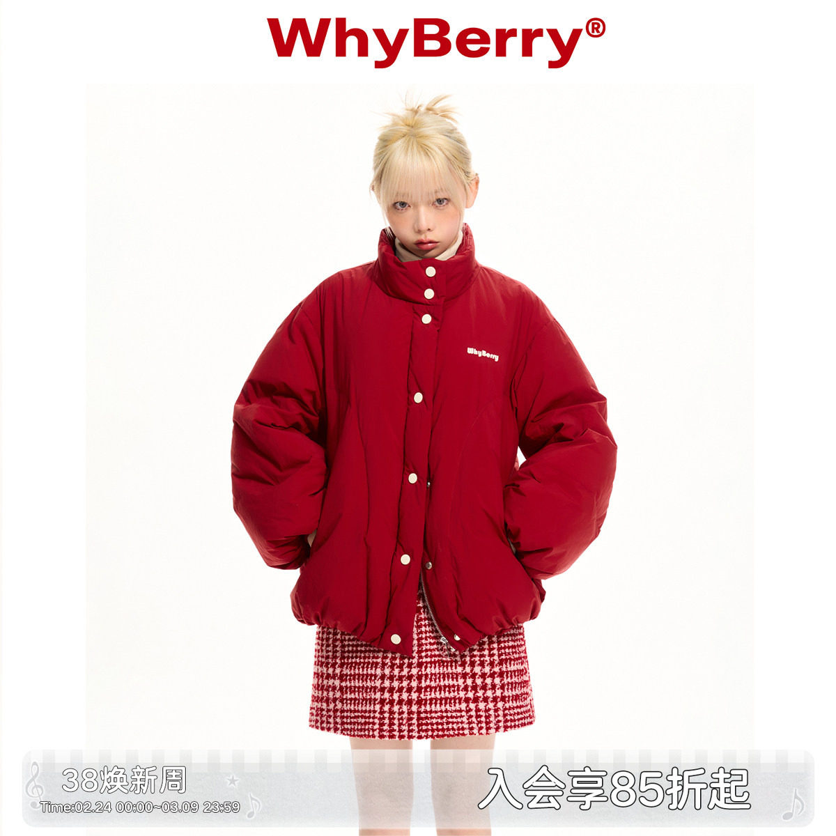WhyBerry 23AW“超轻泡芙”红色羽绒服厚外套新年红短外套保暖女