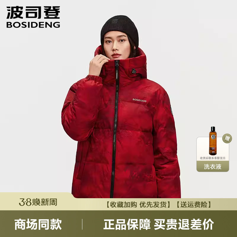 波司登2025新款女士短款极寒加厚鹅绒收腰工装2026新年红色羽绒服