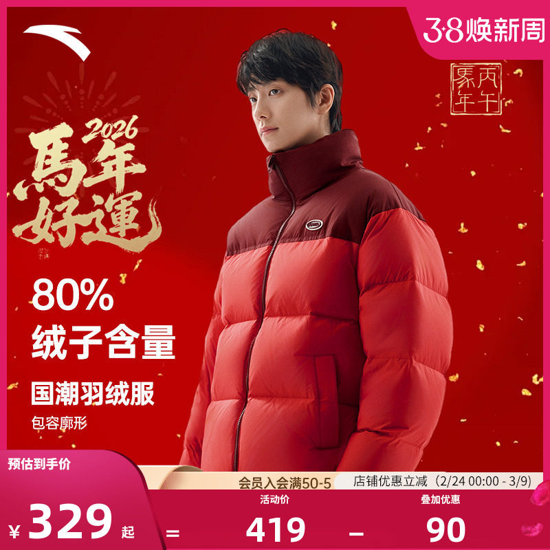 安踏红色羽绒服2025冬季新款情侣款防风保暖本命年中国红棉服外套