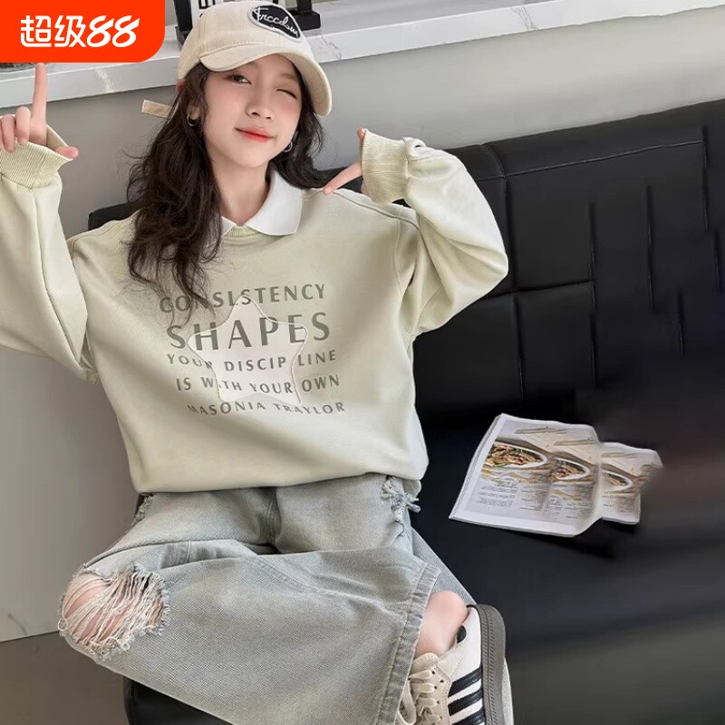 女童卫衣春秋款女宝宝长袖翻领上衣加绒保暖中大童POLO衫女孩衣服