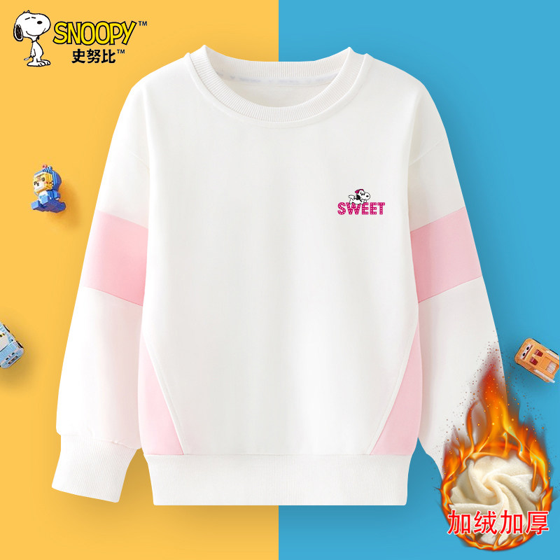 史努比女童卫衣春秋冬款儿童长袖套头衫秋冬季新款中大童加绒加厚