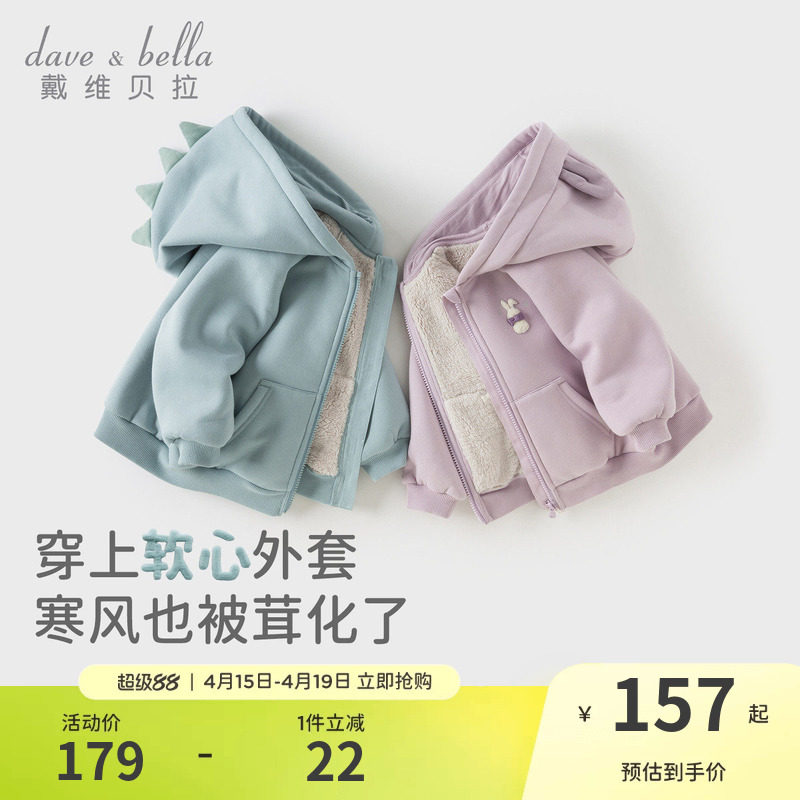 戴维贝拉儿童加绒外套2026春装新男女童加厚卫衣宝宝萌趣衣服A类
