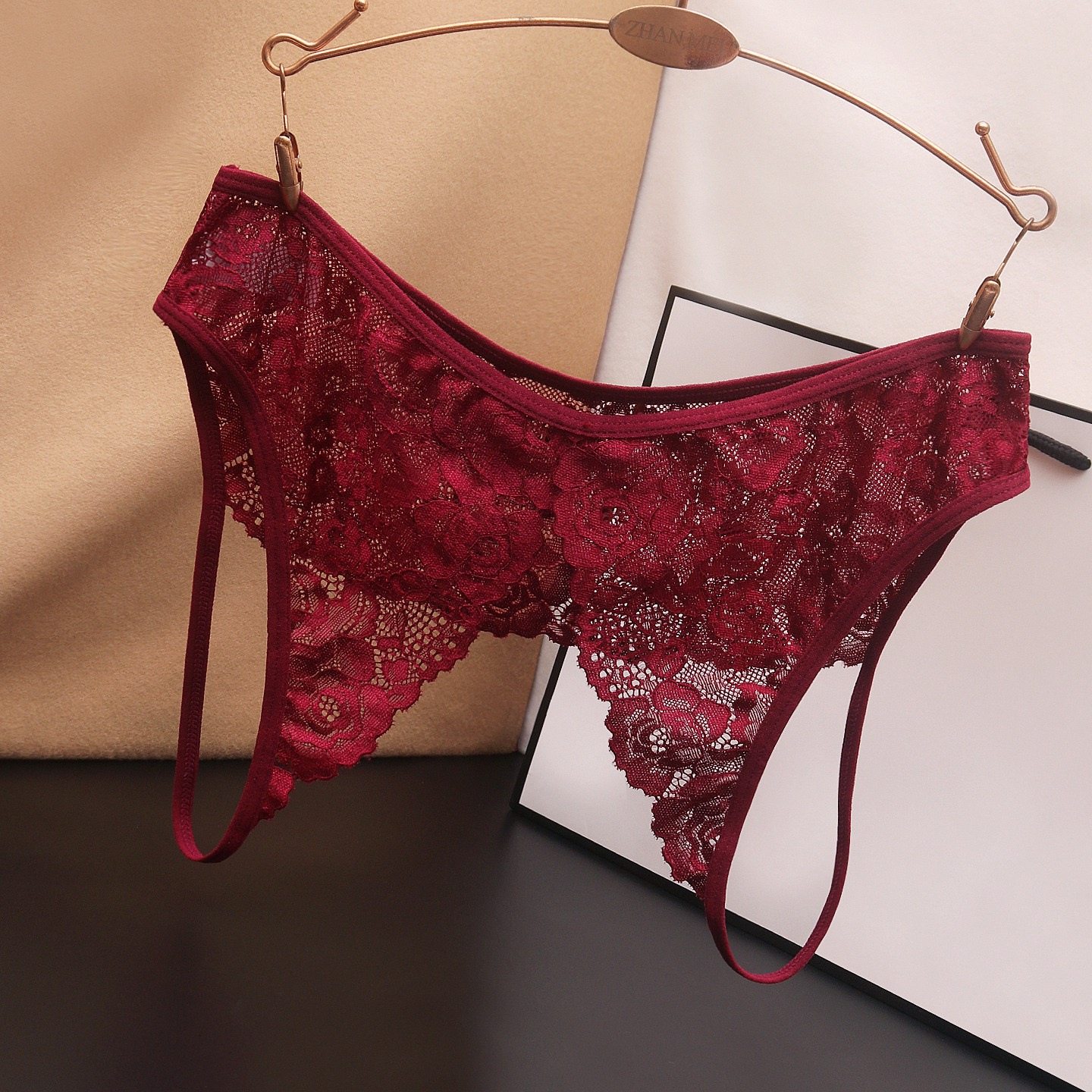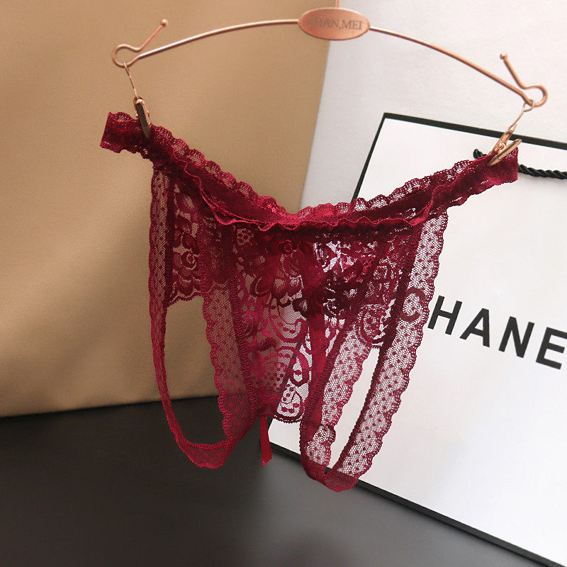 性感情调蕾丝丁字裤免脱低腰超薄法式纯欲透气诱惑火辣开档内裤女