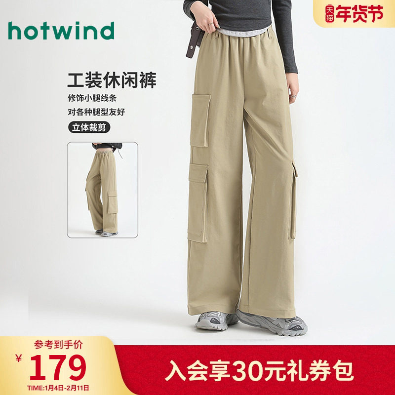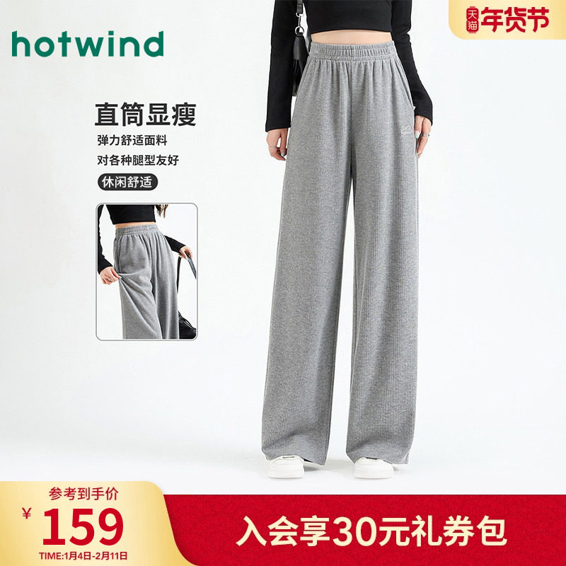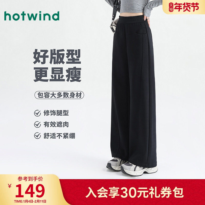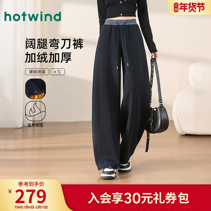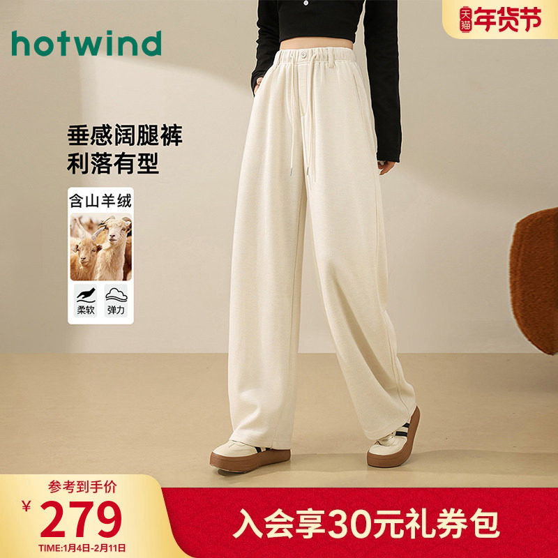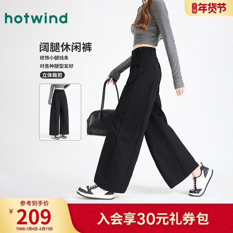热风女士弯刀裤简约气质宽松阔腿裤立体分割显瘦秋冬女款百搭休闲