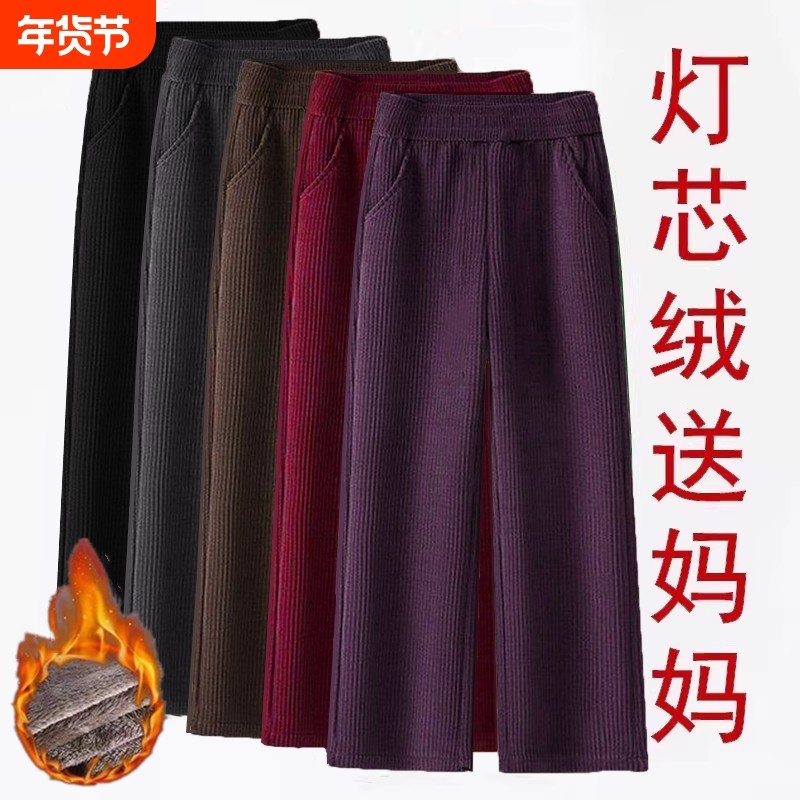 直筒灯芯绒裤子女款高腰显瘦秋冬新款加绒中年妈妈保暖加厚阔腿裤