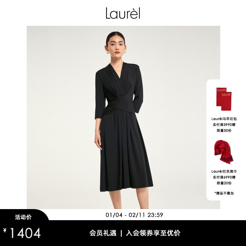 Laurel劳芮春秋气质时尚收腰显瘦小黑裙V领连衣裙LWD343Y04100