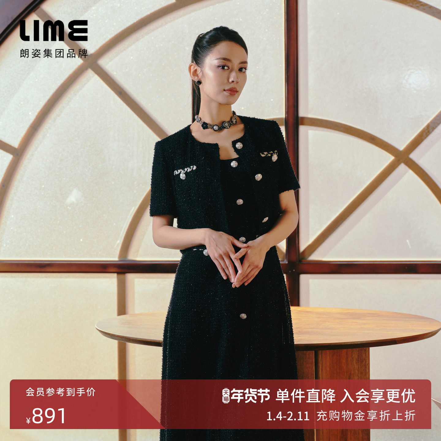 【吉娜同款】朗姿集团LIME莱茵小香风连衣裙25夏收腰显瘦小黑裙