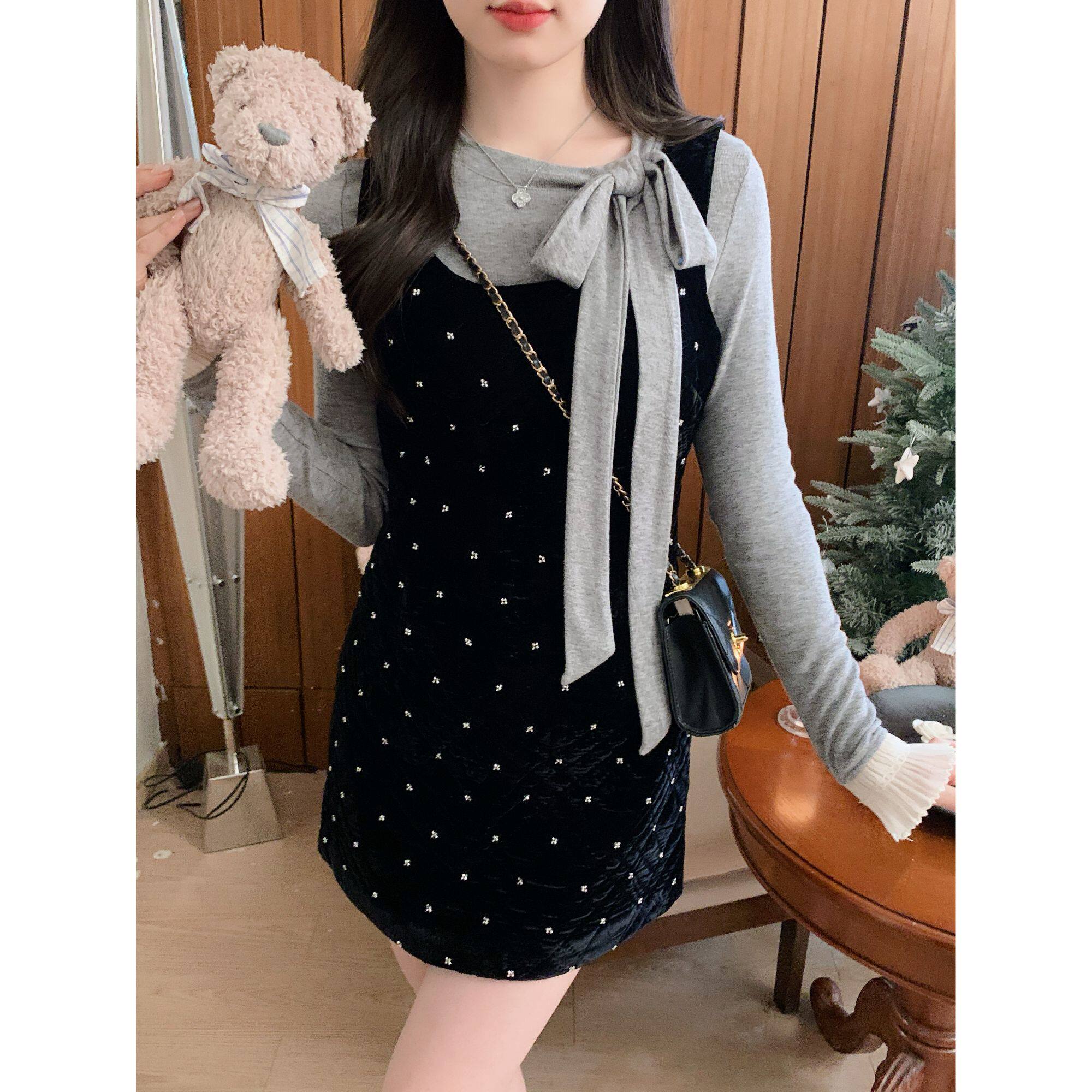 2025秋冬高级感内搭外穿亮片钉钻打底裙赫本连衣裙显瘦小黑裙