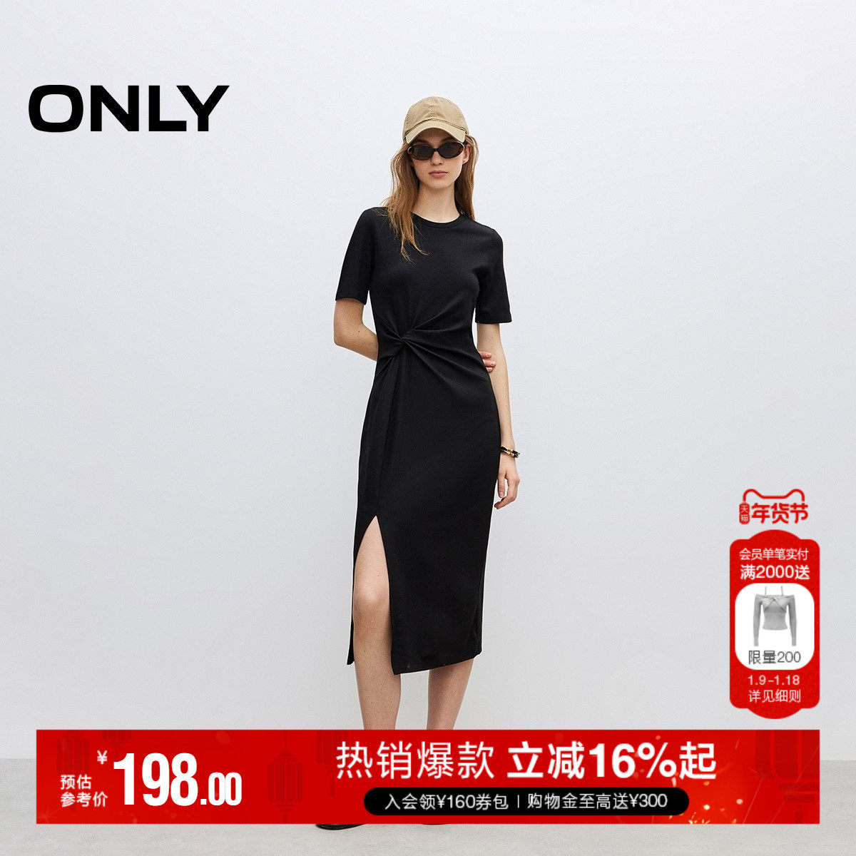 【热销遛弯裙】ONLY2025秋季新款气质性感开叉显瘦小黑裙连衣裙女